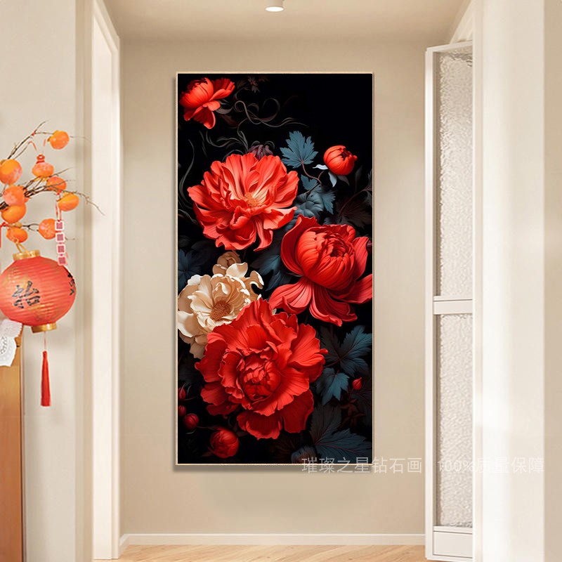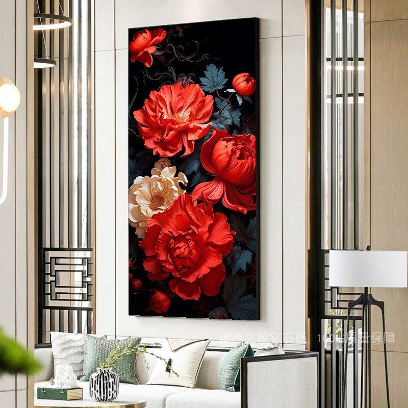钻石画2025高颜值牡丹花卉5d点贴钻十字绣客厅玄关手工粘钻中国风