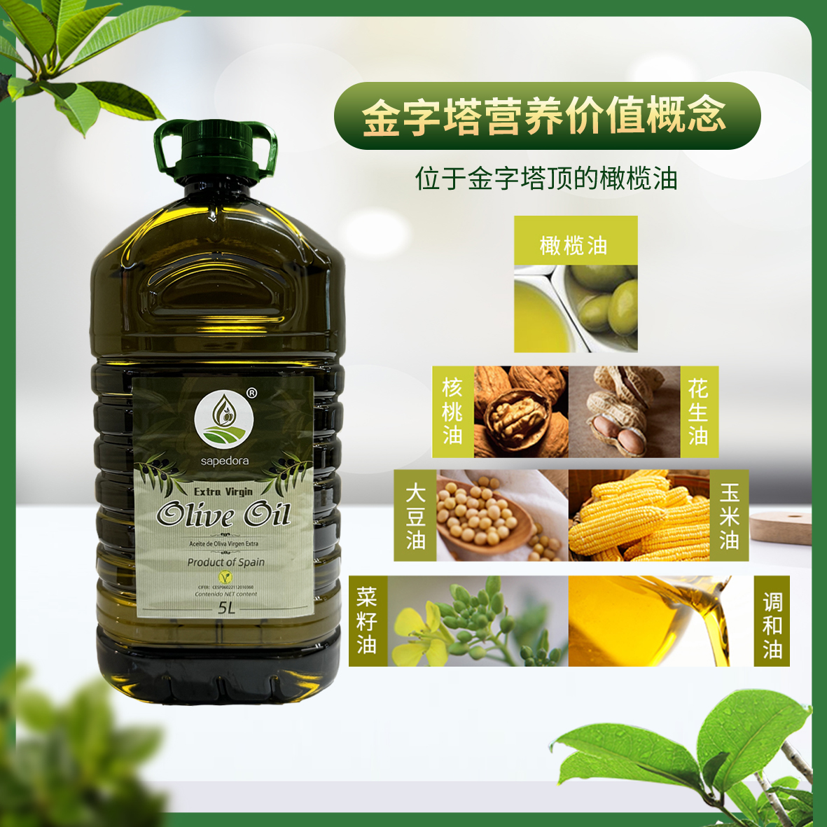 西班牙原装进口特级初榨纯橄榄油5L升减餐食用油炒菜凉拌烹饪特价
