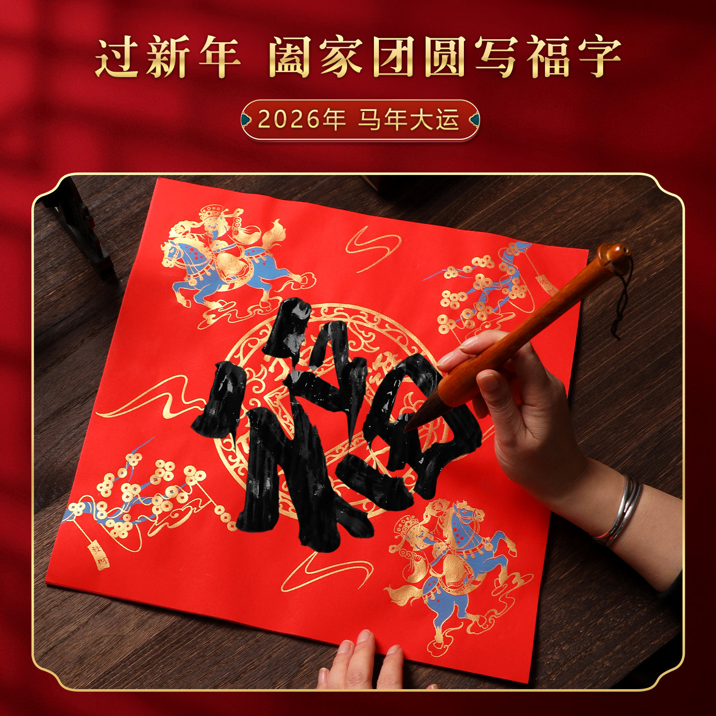 2026马年新款蜡染斗方手写福字纸批发万年红加厚大红色半生半熟宣纸春联对联纸毛笔书法专用喜庆空白新年