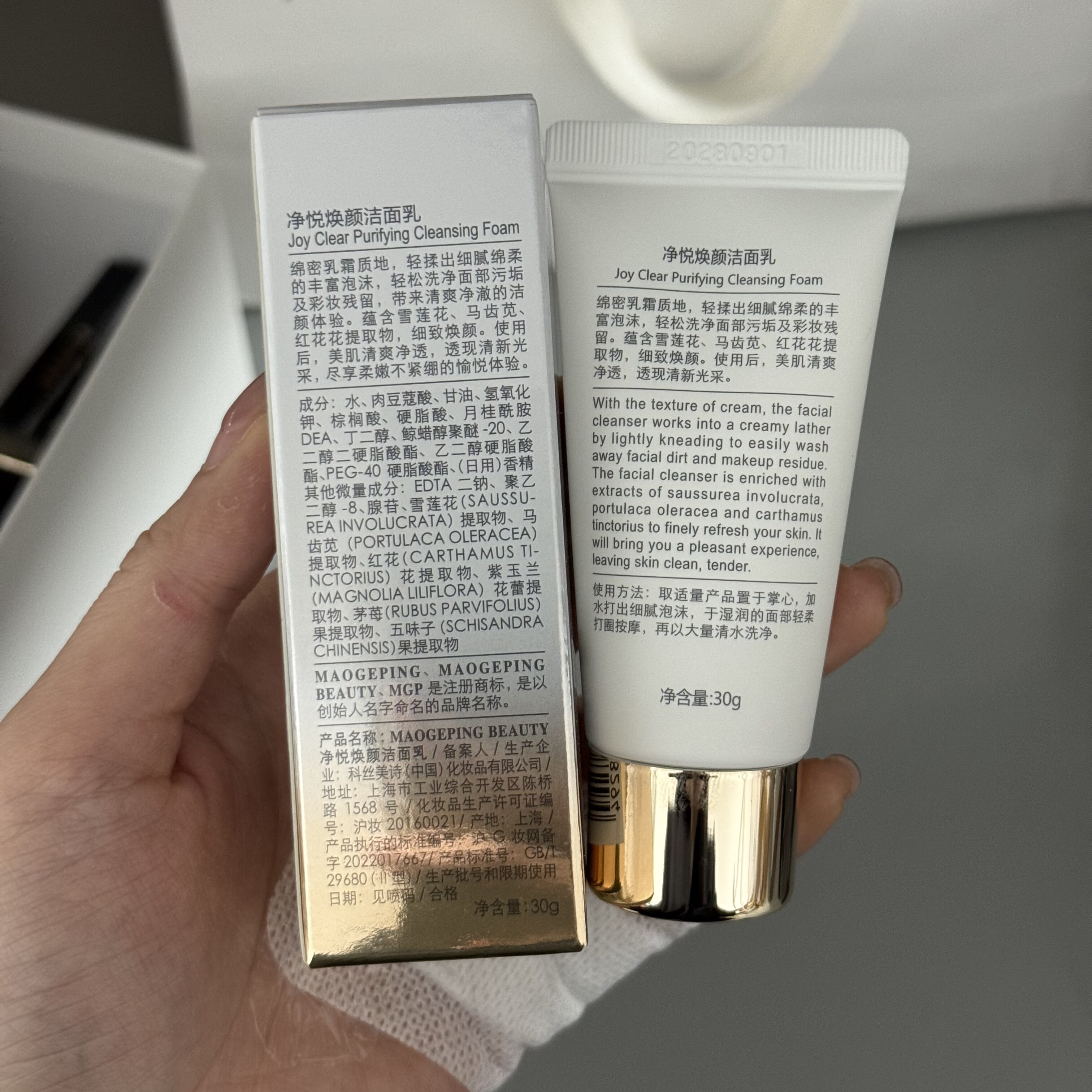 国内专柜 毛戈平净悦焕颜洁面乳30g小样 保湿洗面奶深层清洁洁面