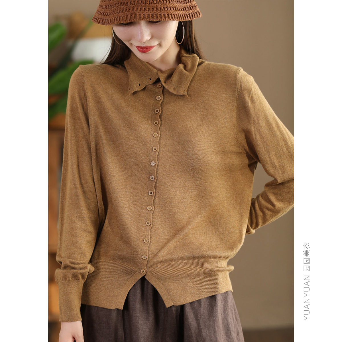 时尚绵羊毛打底衫桑蚕丝上衣软糯长袖内搭单排扣气质纯色打底衫秋
