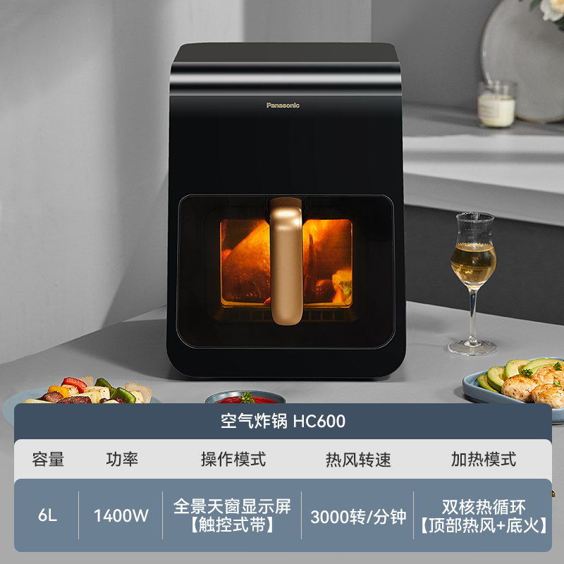 松下可视空气炸锅家用全自动6L大容量智能多功能蒸汽电炸锅HC600