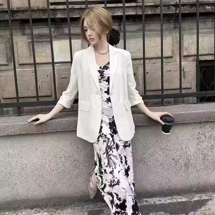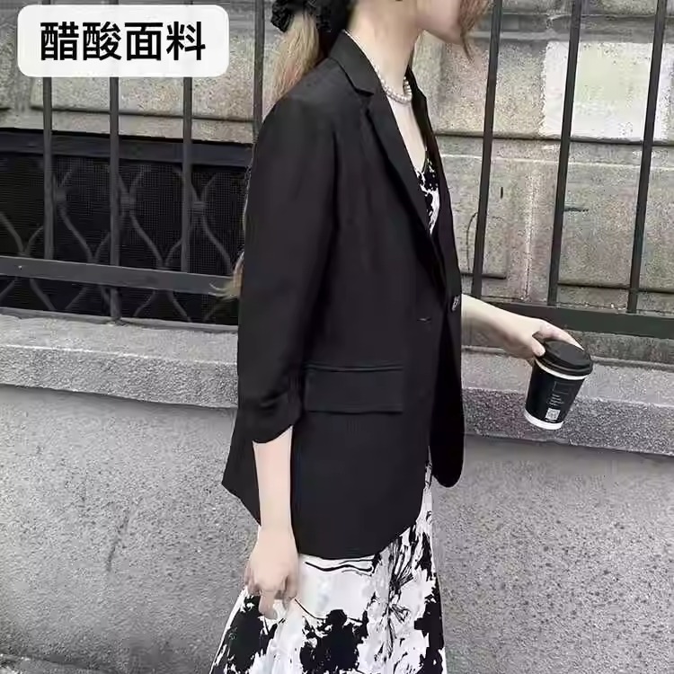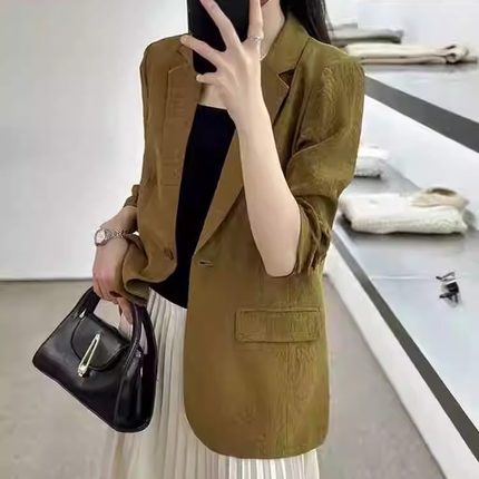 醋酸缎面西装外套女2025秋季新款高级感气质休闲小西服上衣25010
