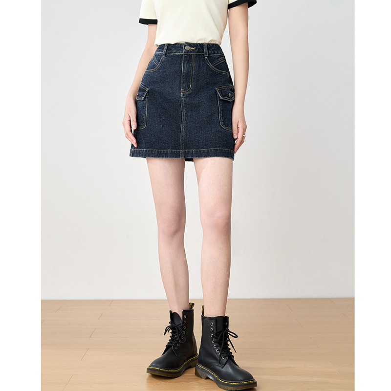 betu百图复古原色牛仔裙女短裙2025年秋季新款深蓝色高腰半身裙
