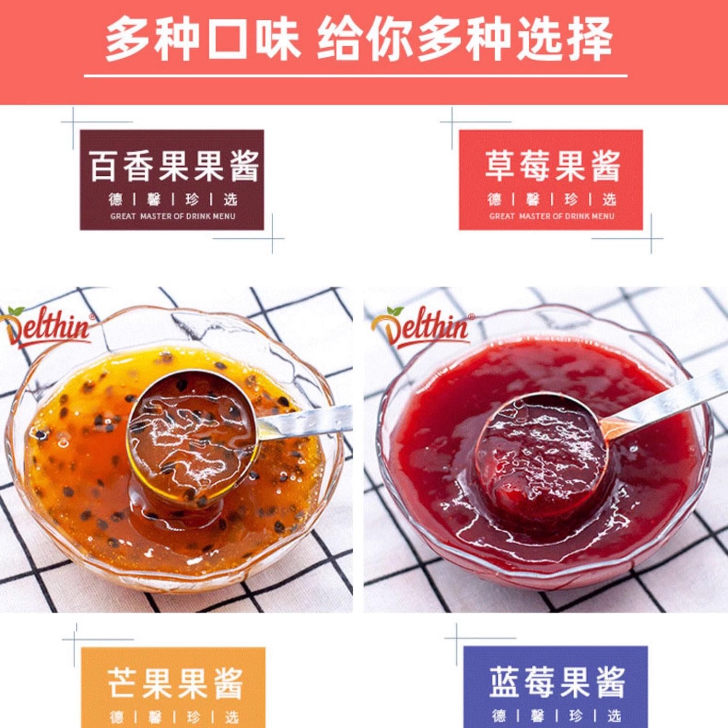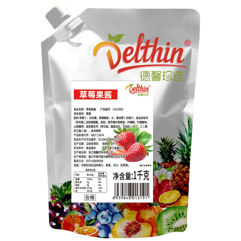 德馨果酱草莓果酱芒果蓝莓水蜜桃杨枝甘露百香果酱1kg奶茶店专用
