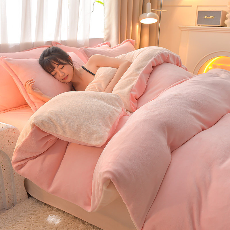 牛奶绒水晶绒网红四件套冬珊瑚绒加厚双面法兰绒床单床笠床上用品