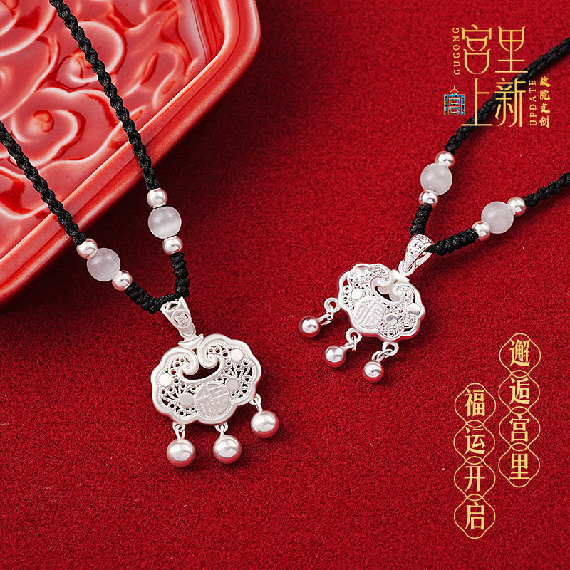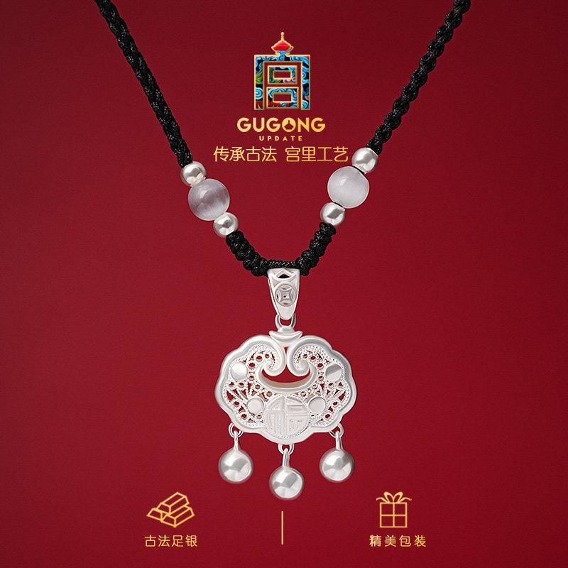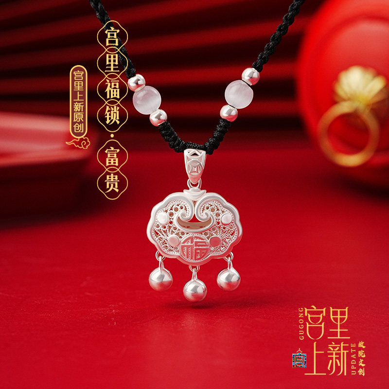 宫里上新长命锁项链纯银999足银平安锁吊坠女银锁宝宝生日礼物
