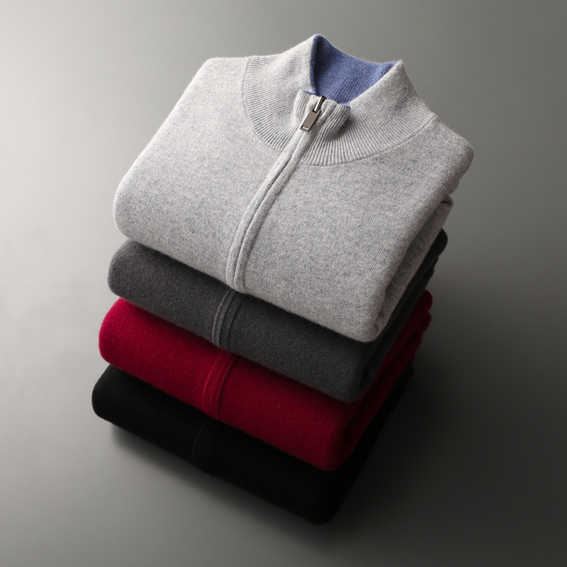 山羊绒衫 双面穿拉链男士羊绒开衫加厚秋冬商务休闲针织外套上衣