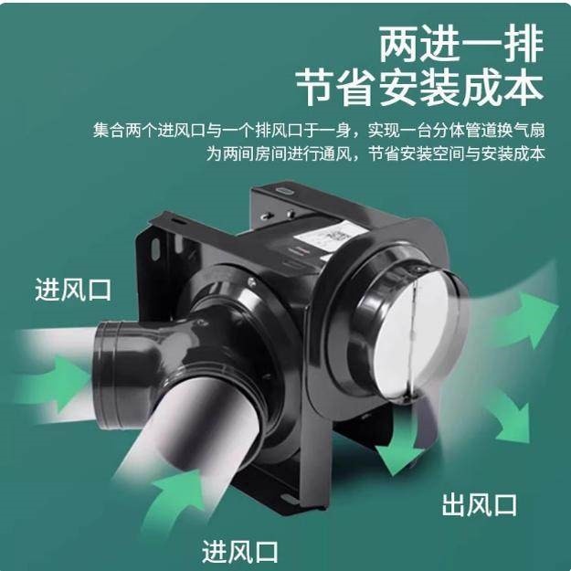 绿岛风排气扇家用轻音分体管道风间送风机机酒店一拖二换气扇卫生