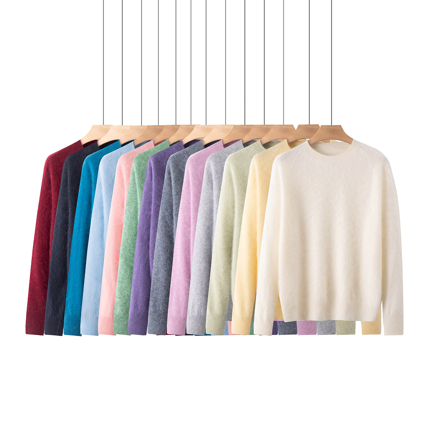 重磅高端!云雾感拉毛羊毛羊绒衫女氛围感拉绒长袖无缝针织衫毛衣