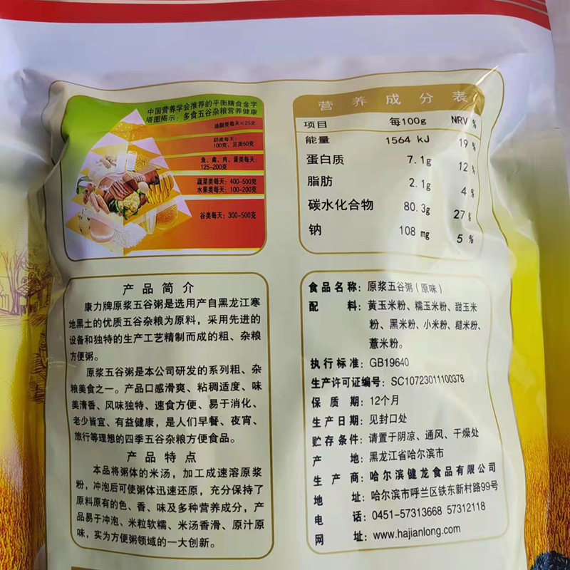 康力原浆五谷粥400g原味甜味五谷杂粮代餐即食冲饮东北特产