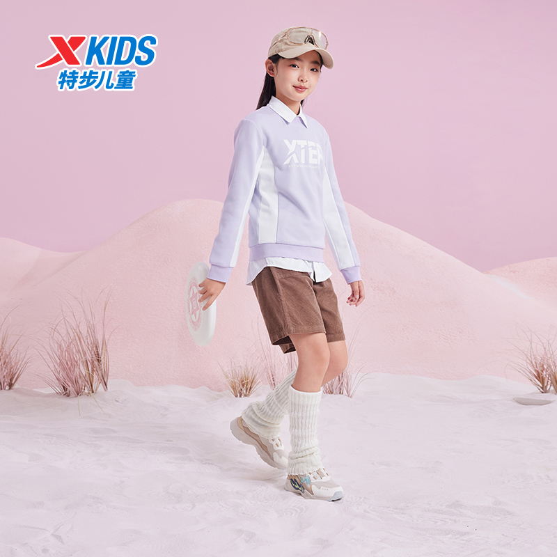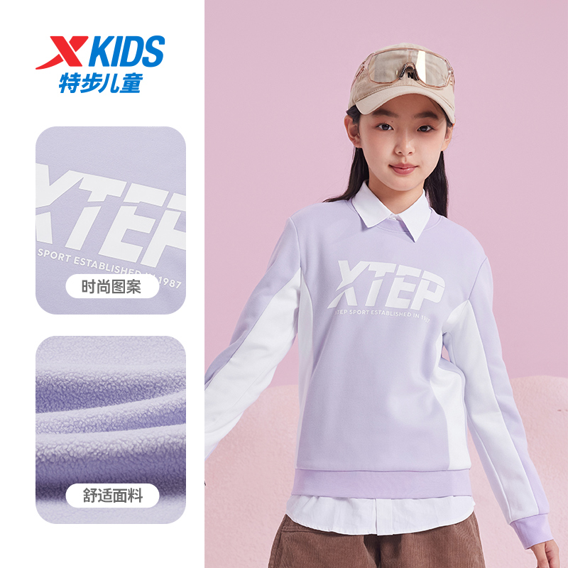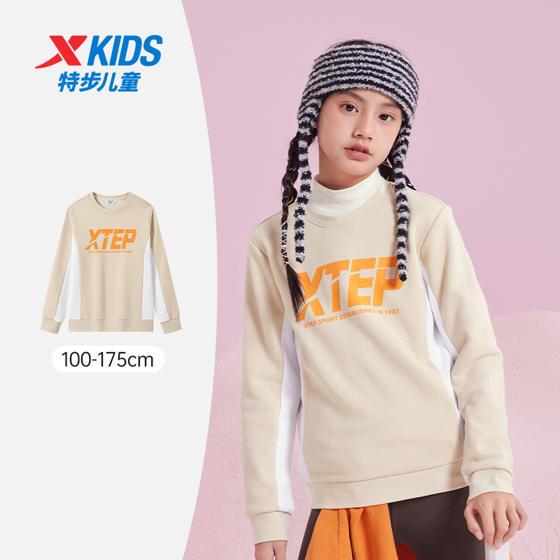 特步童装2025春秋新款儿童加绒卫衣女童运动上衣中大童冬装针织厚