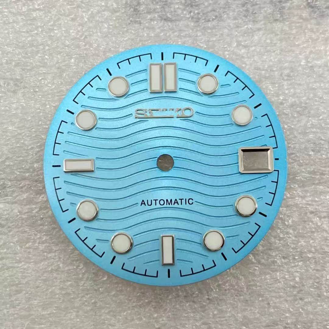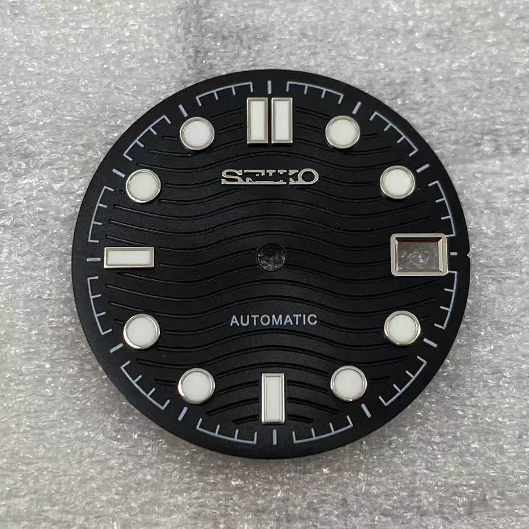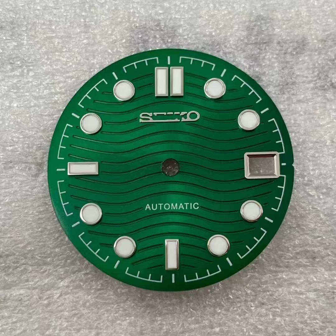新款NH35表盘代用海马300改装字面圆钉28.5mm绿夜光适合NH35机芯
