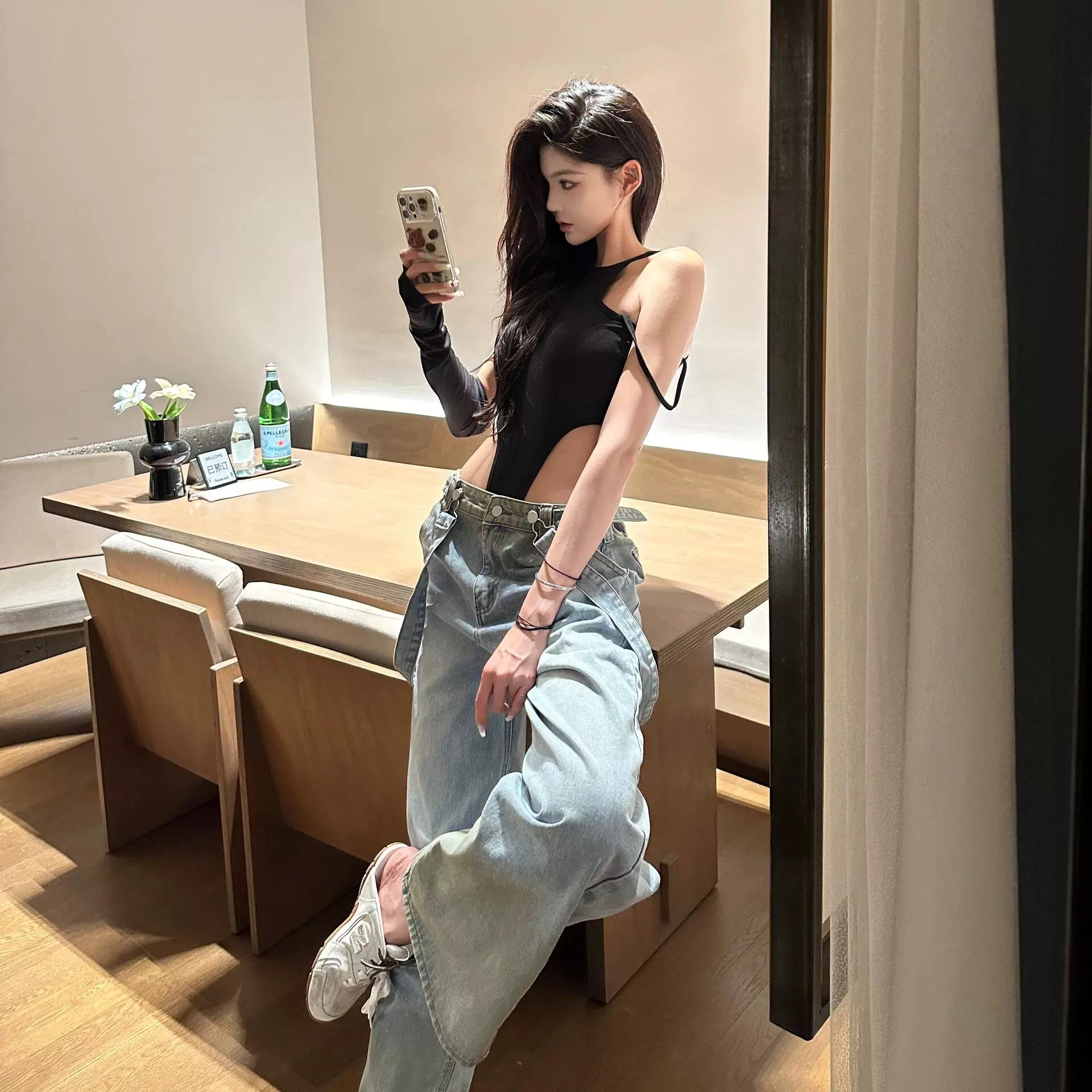 辣妹吊带连体衣裤女春夏2025新款黑色包臀运动健身高街打底连衣裤