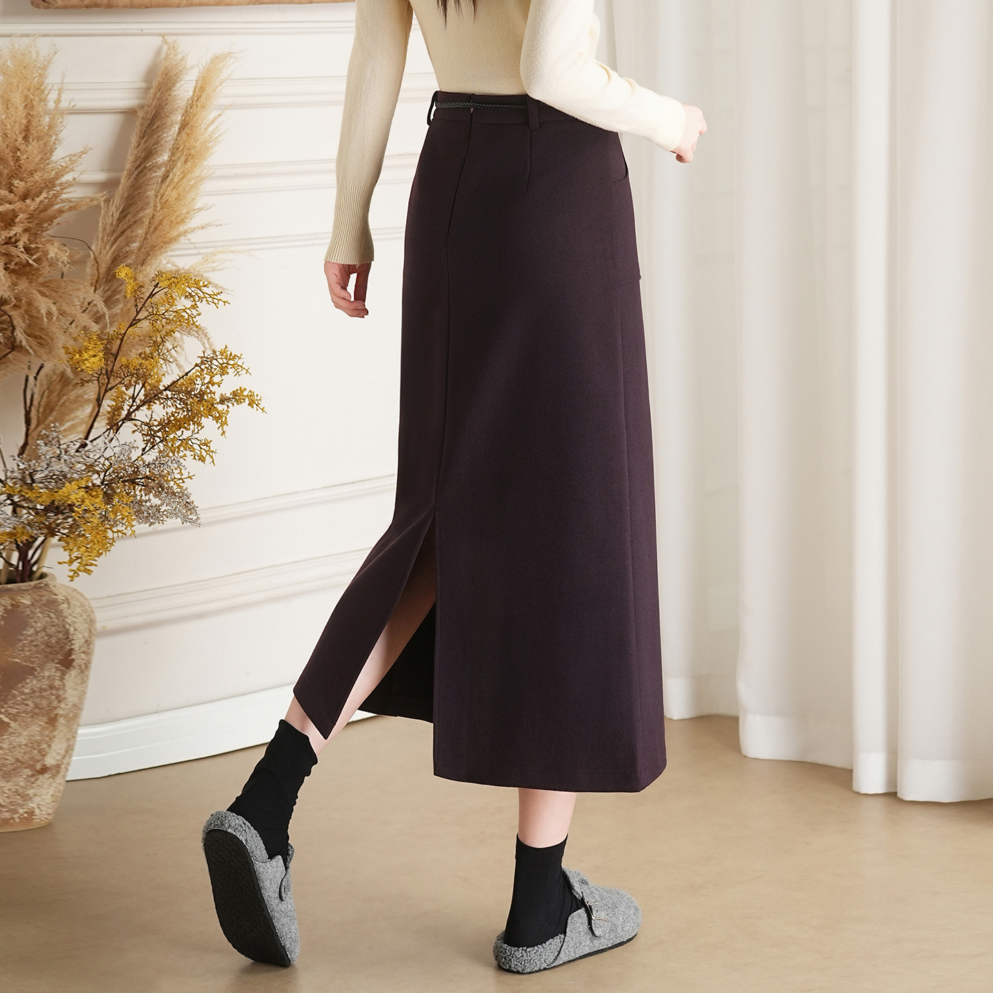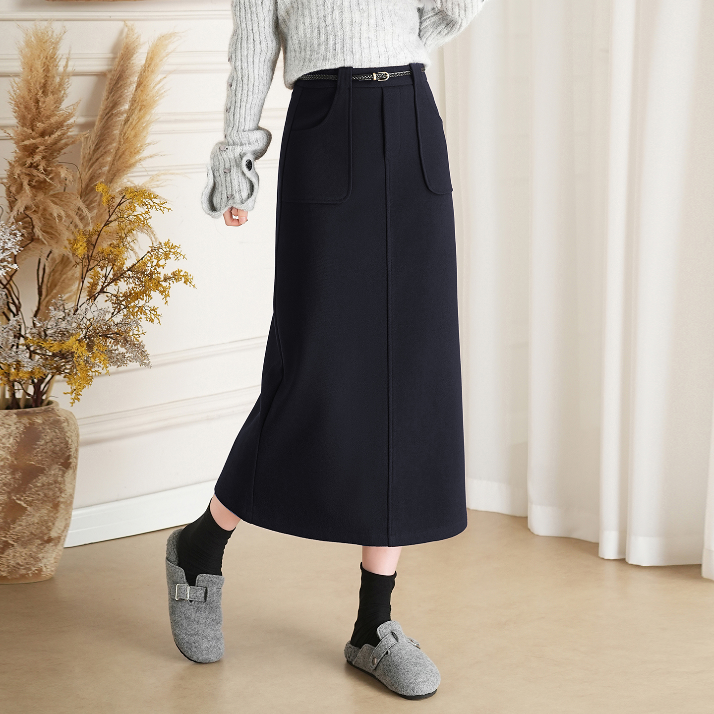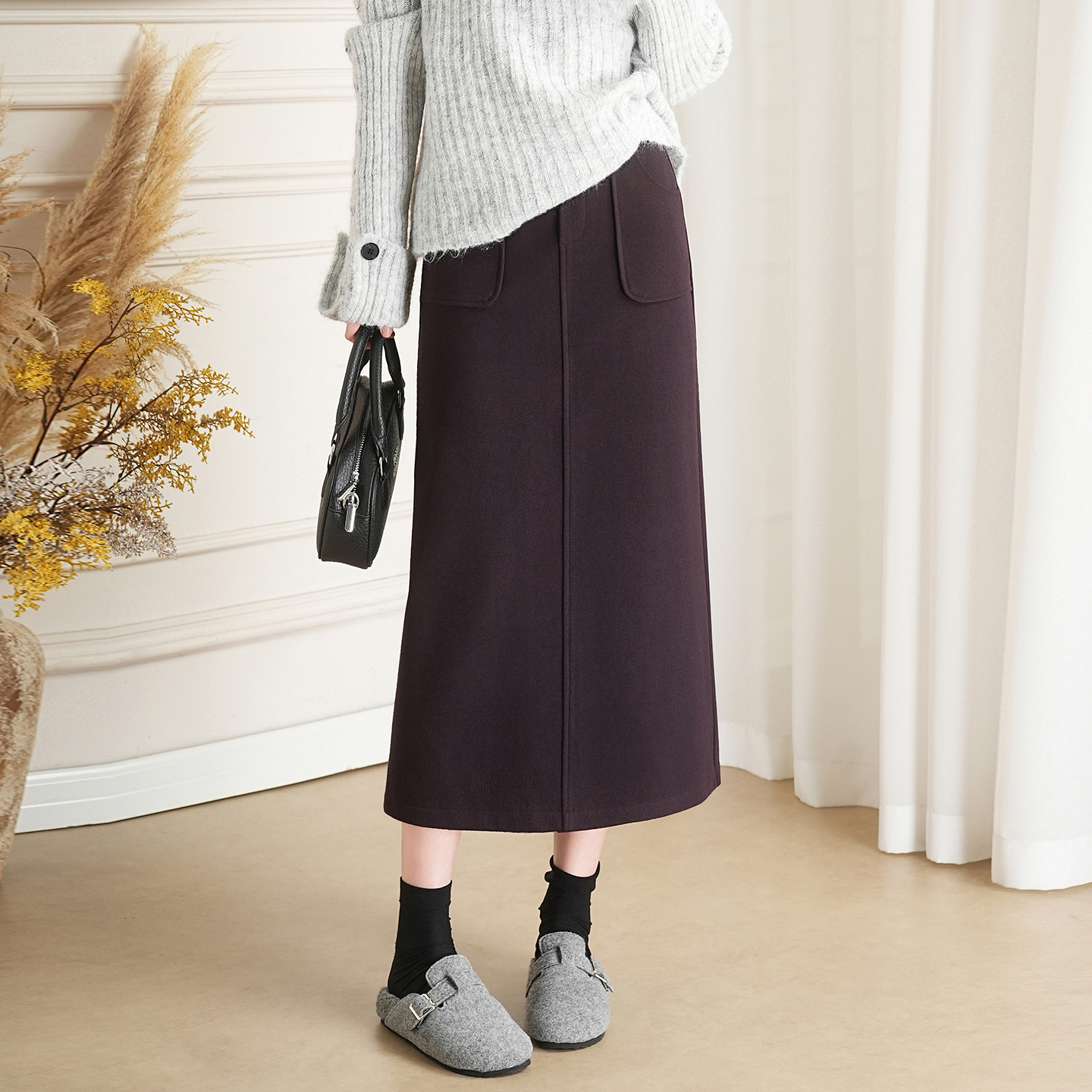 复古羊毛呢半身裙女秋冬2025新款高腰长款开叉显瘦气质包臀直筒裙