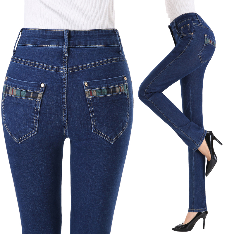 春夏季薄款高腰牛仔裤女直筒宽松长裤子女修身弹力中老年胖mm女裤