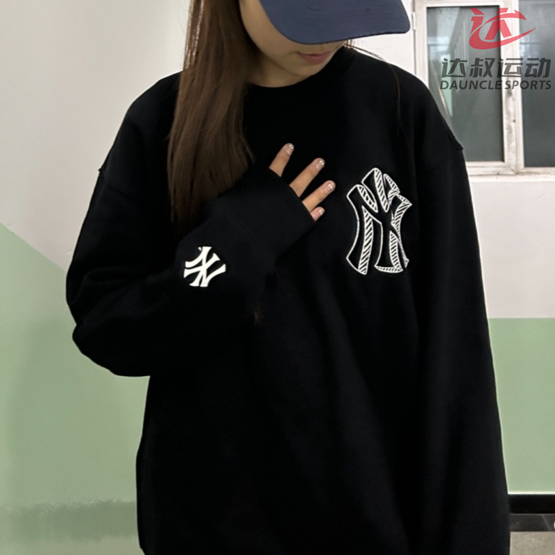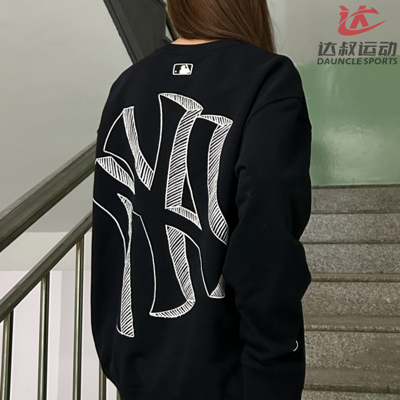 MLB情侣款运动卫衣男女NY立体大标印花圆领休闲套头衫3AMTB0434