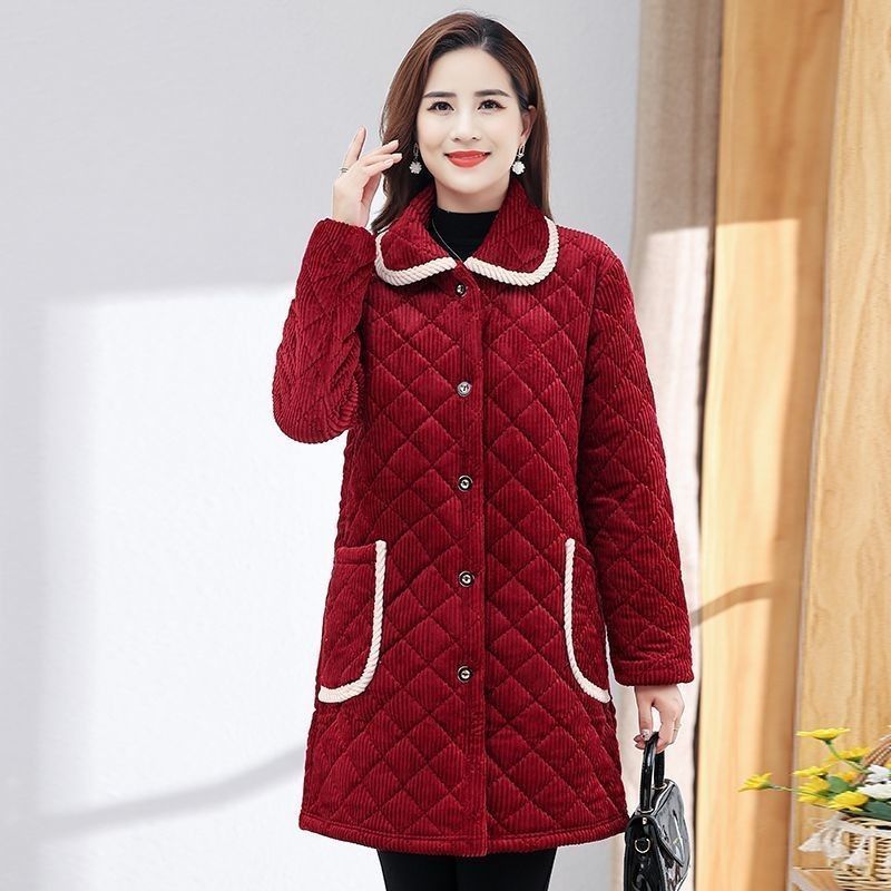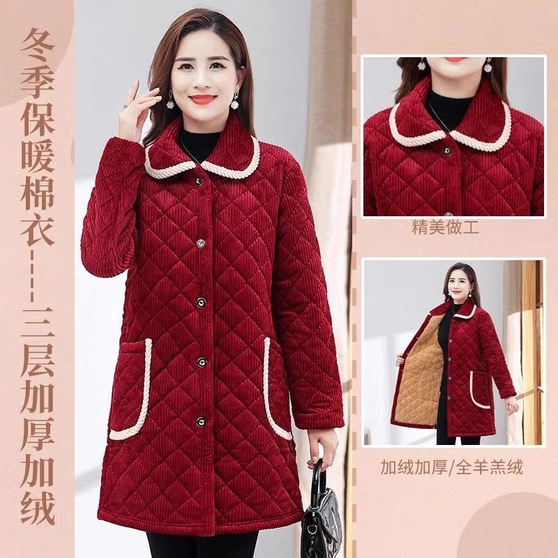 四川省省服棉衣外套棉服中长款冬季罩衣女加绒加厚灯芯绒保暖棉袄