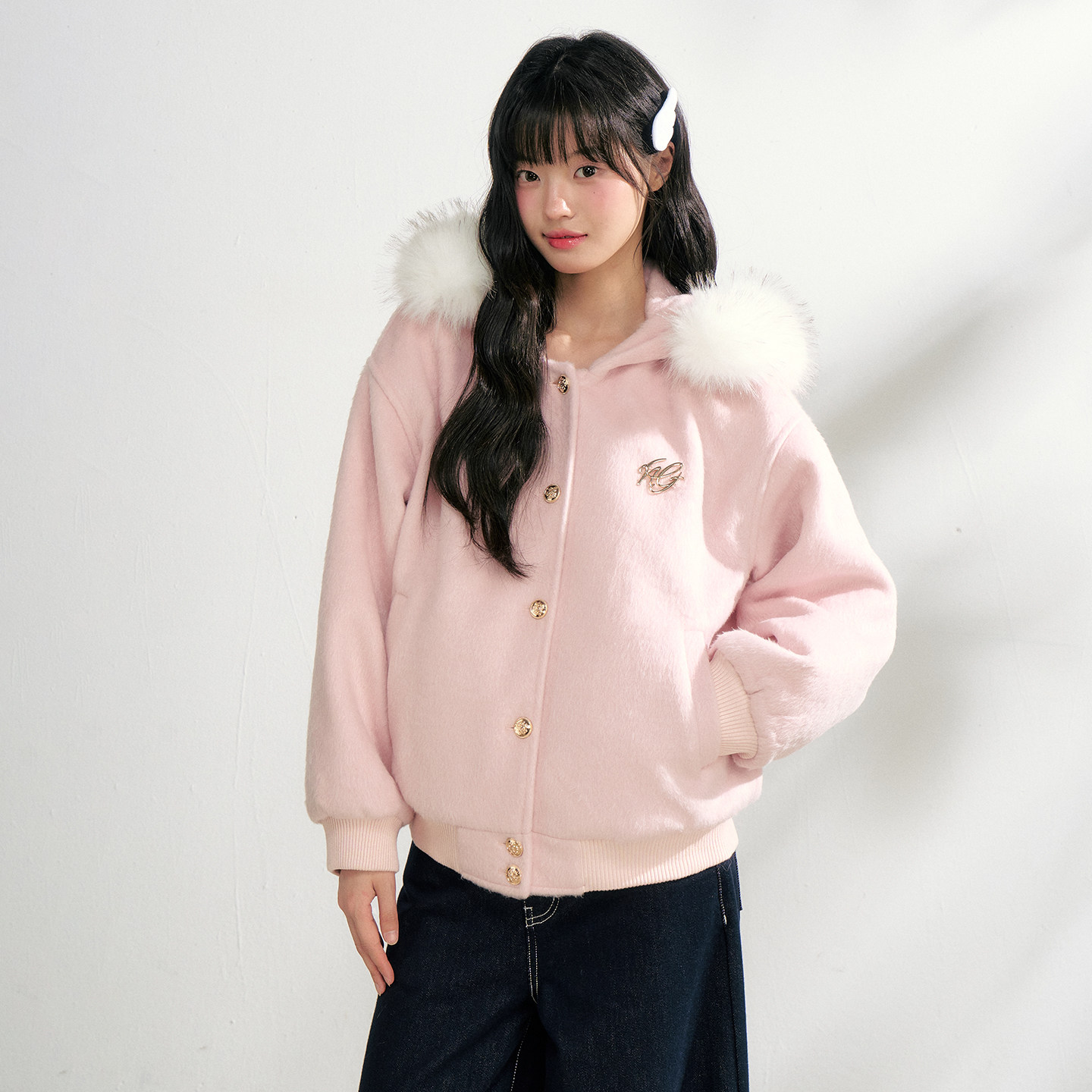 NANGOON 原创设计毛呢连帽冬季羊毛保暖毛领宽松休闲外套