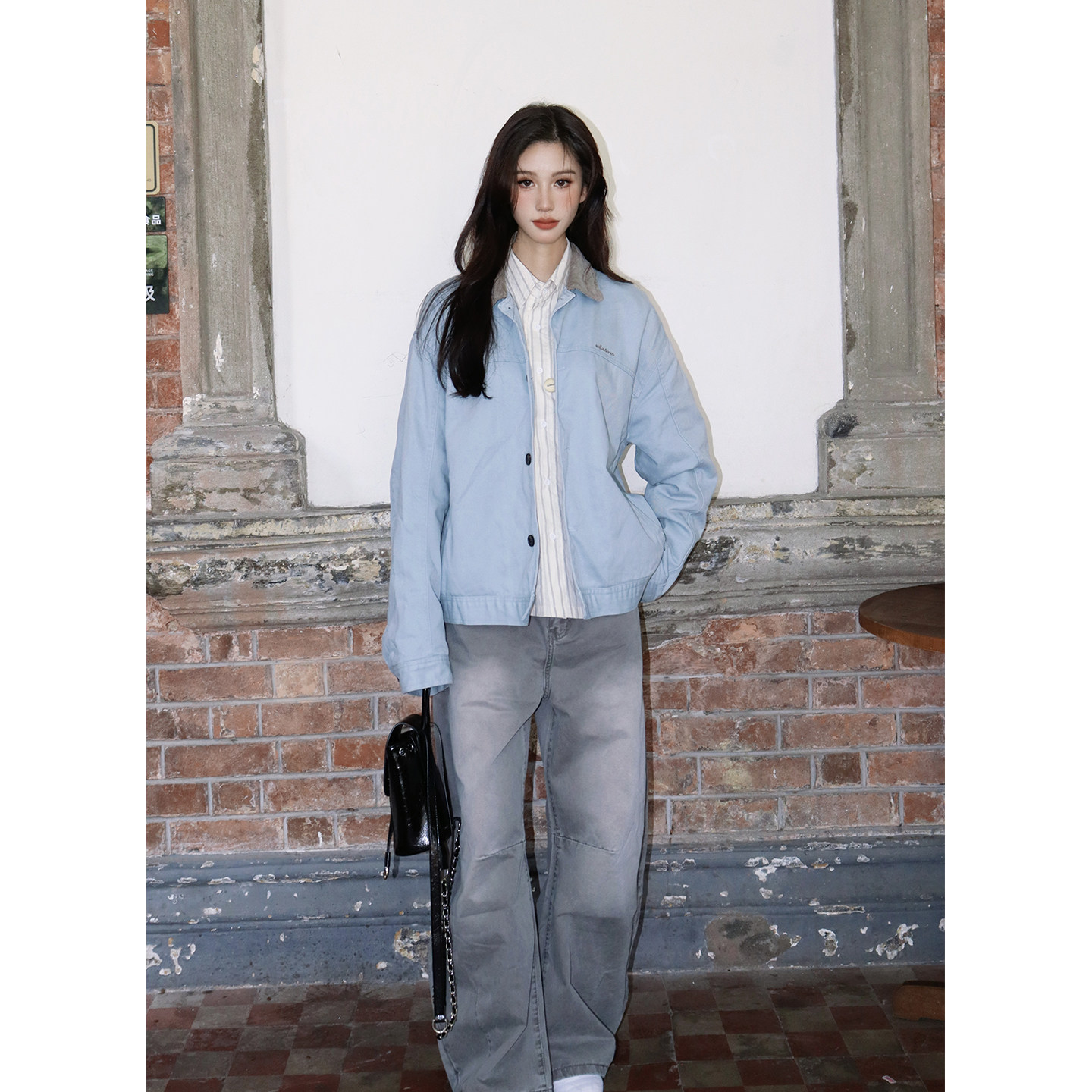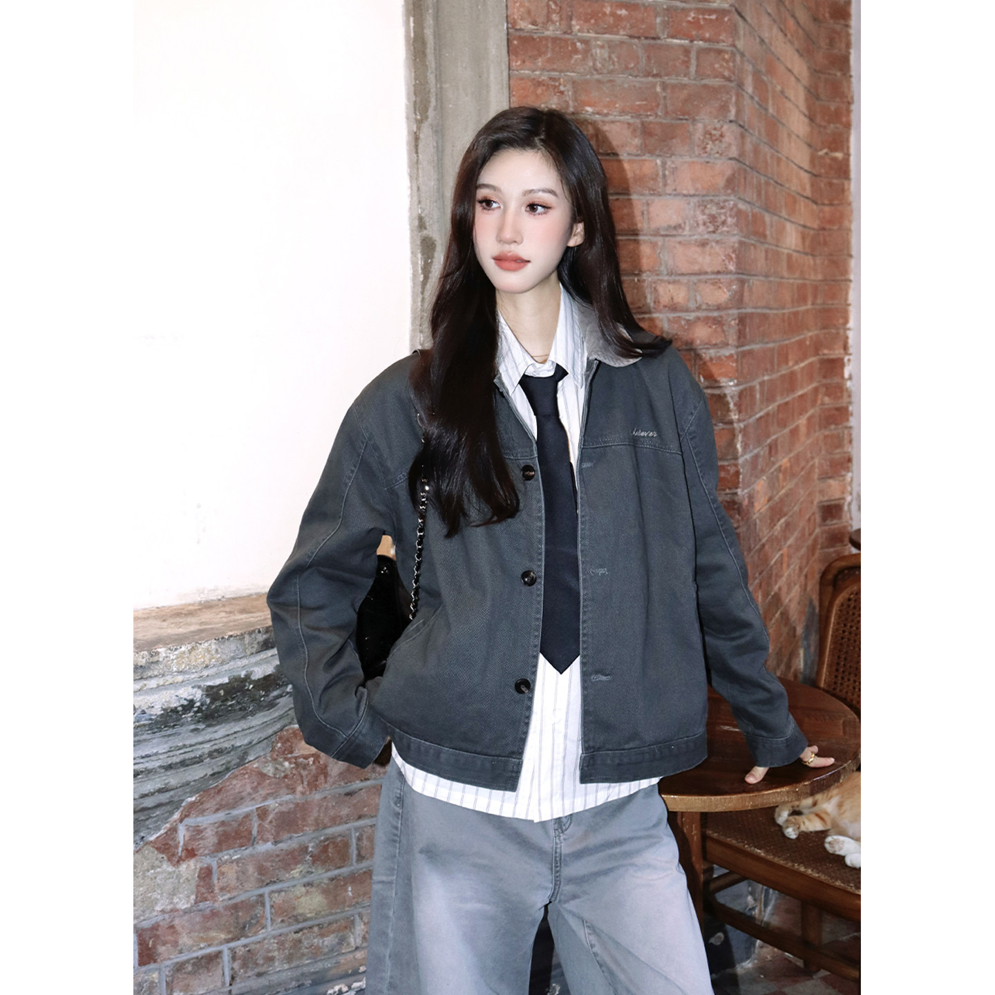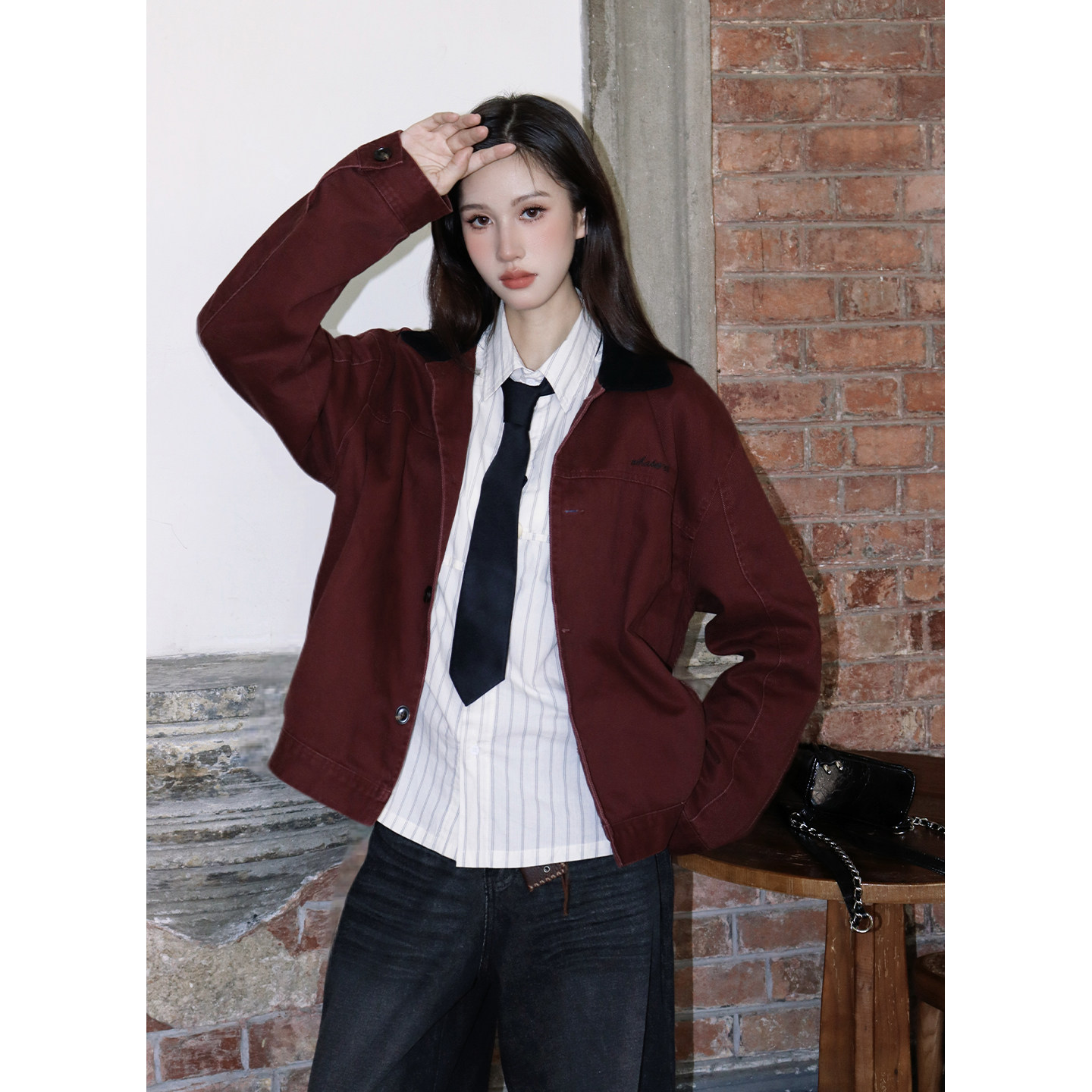 WUR 美式撞色翻领底特律宽松夹克男女同款cleanfit短款外套