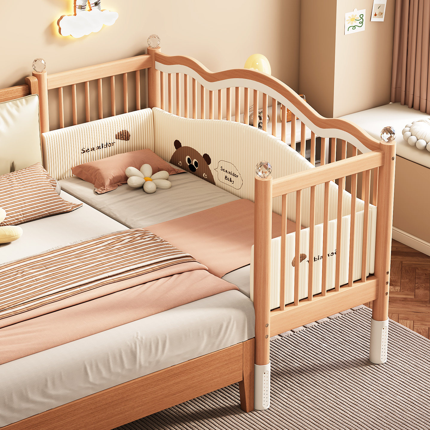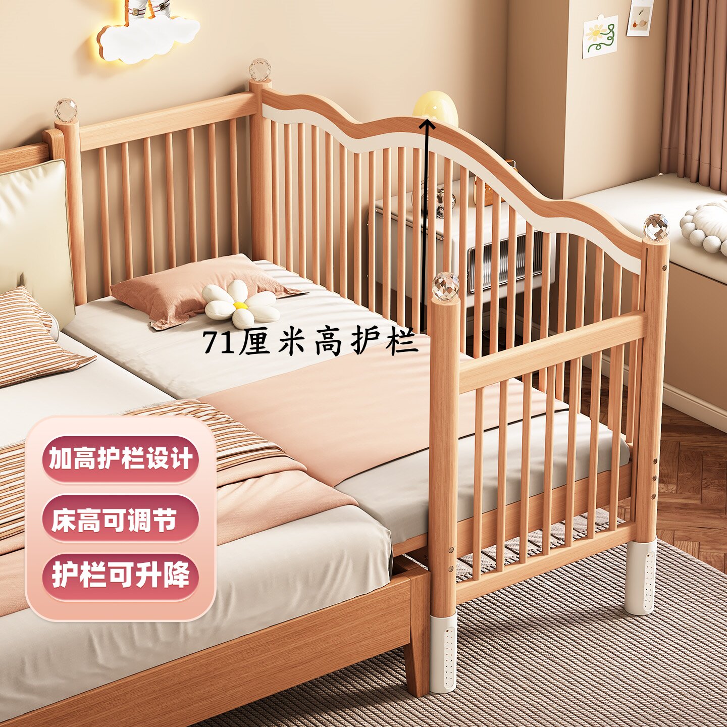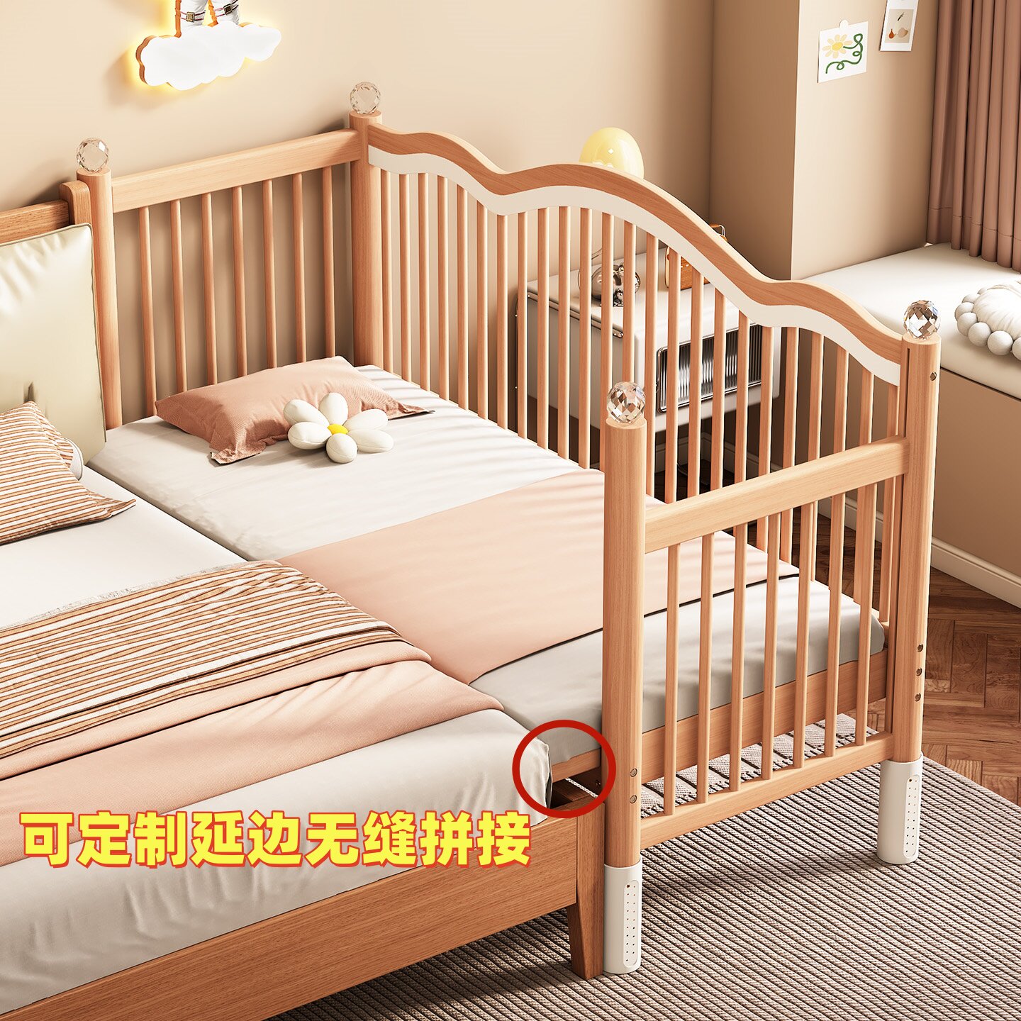 实木拼接床婴儿实木定制小床升降榉木大床床边加宽大人宝宝儿童床