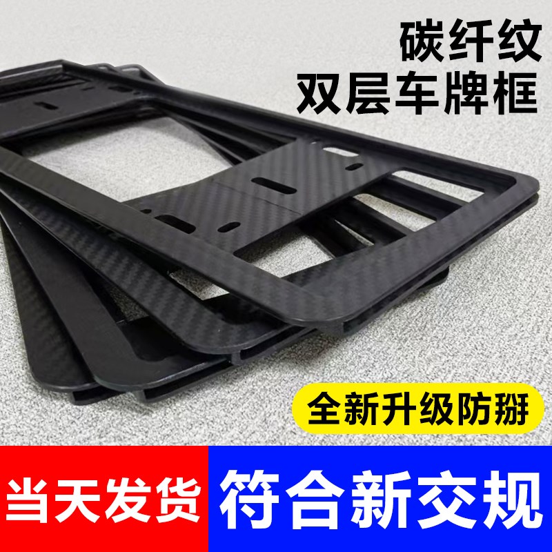 加厚碳纤纹车牌h框架边框汽车号码蓝牌照框新交规新能源车牌保护