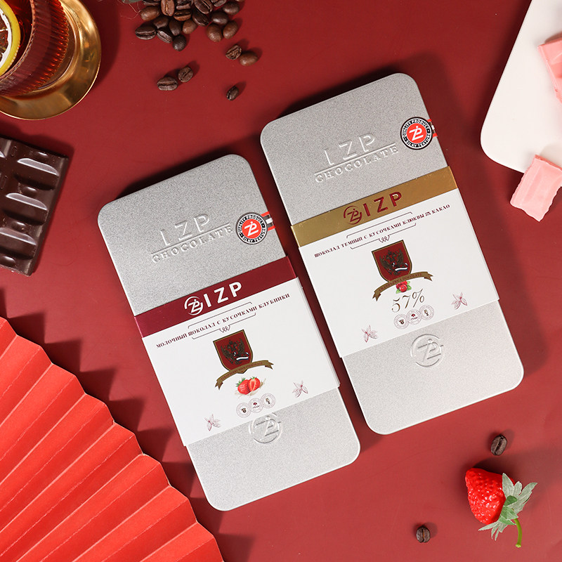 俄罗斯巧克力可可脂铁盒排块健身饱腹装草莓蔓越莓榛子夹心巧克力
