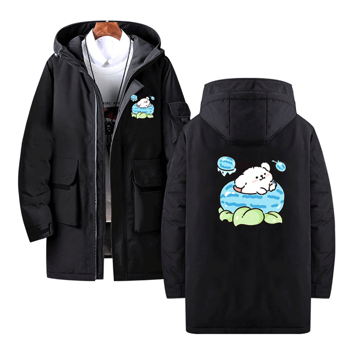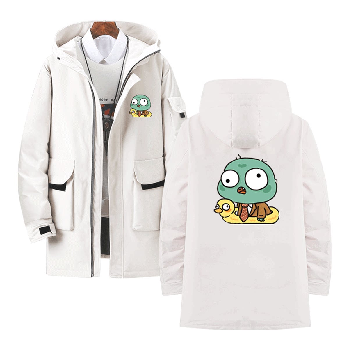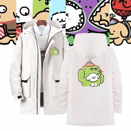 线条小狗联动植物大战僵尸卡通可爱Q版情侣秋冬定制中长款羽绒服