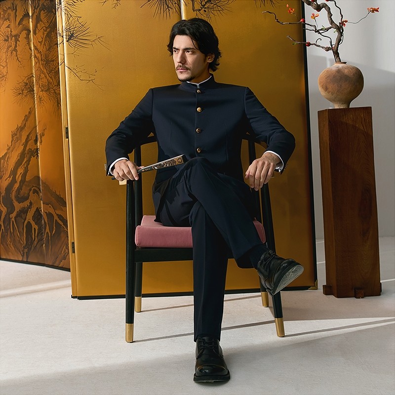 【中华立领】柒牌毛料西服套装男2025秋季新款中山装爸爸婚礼西装