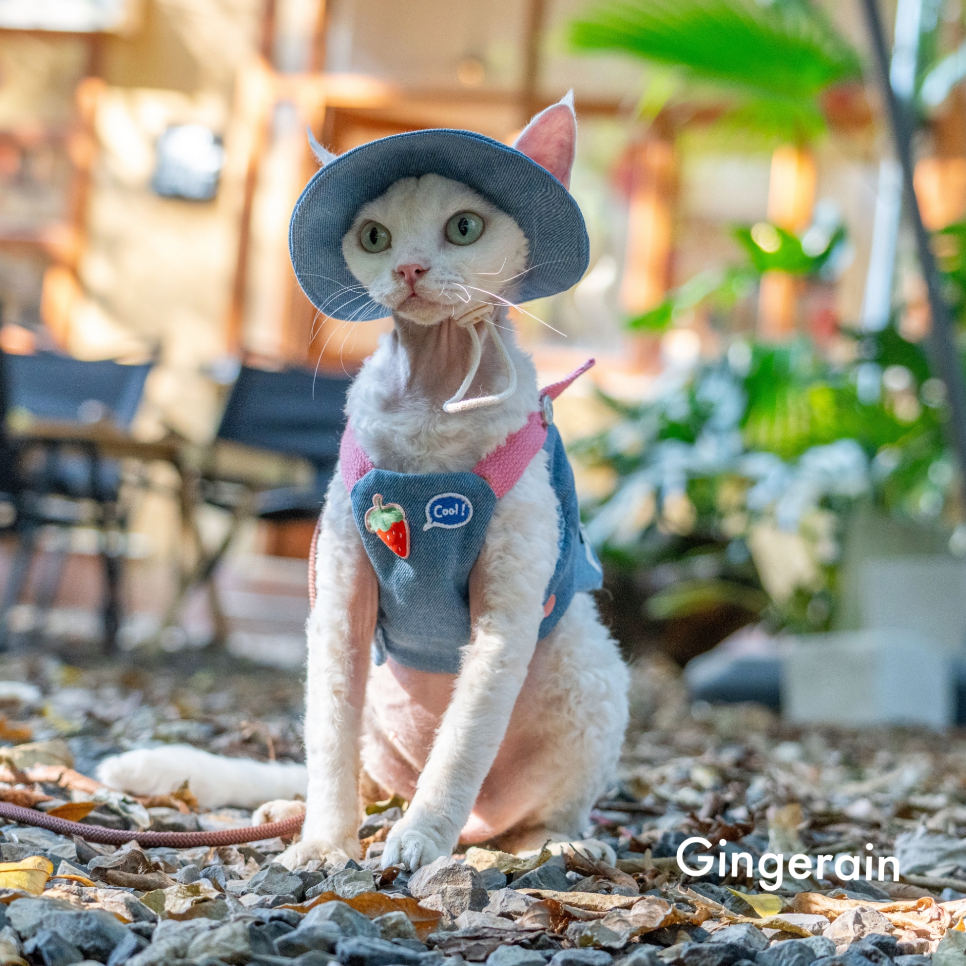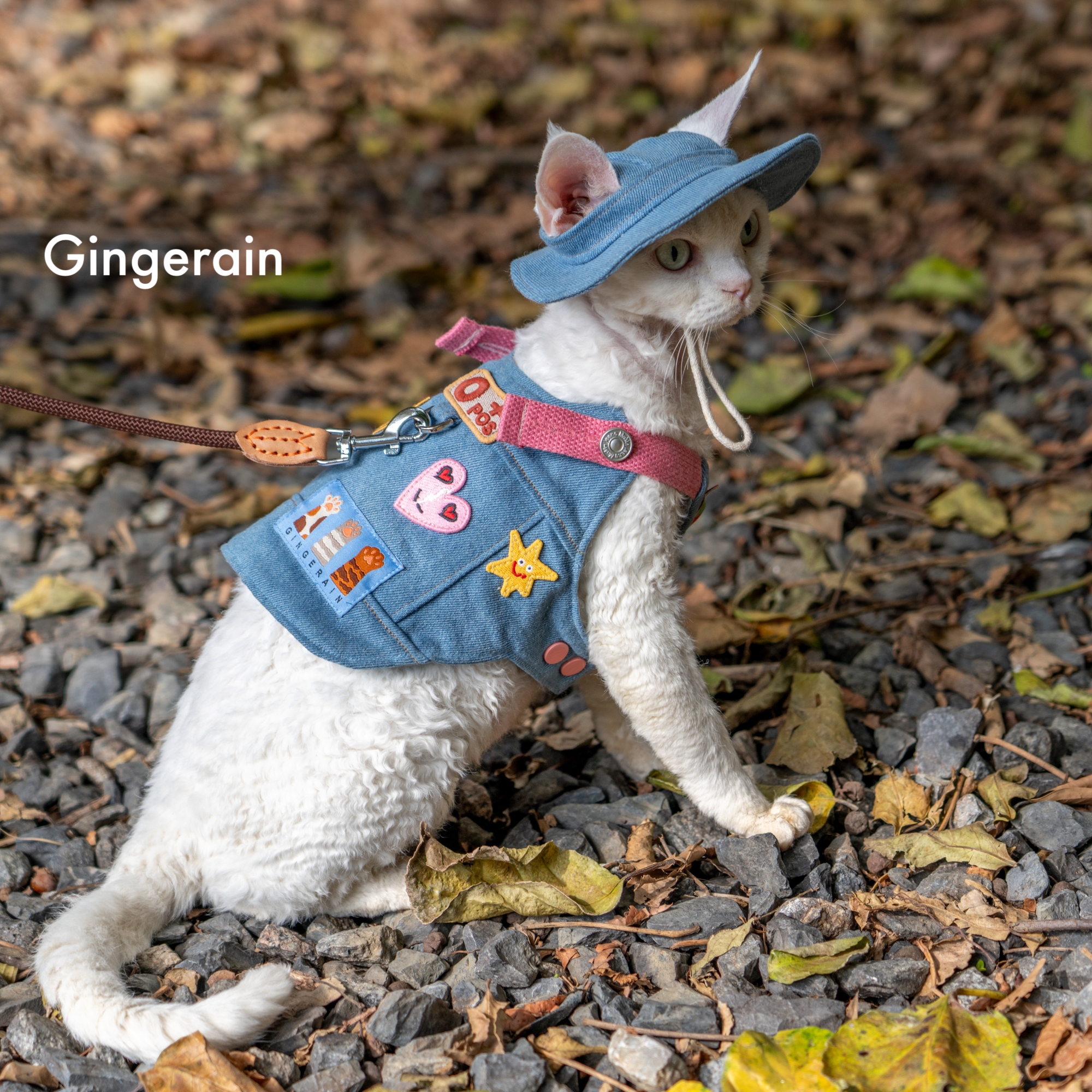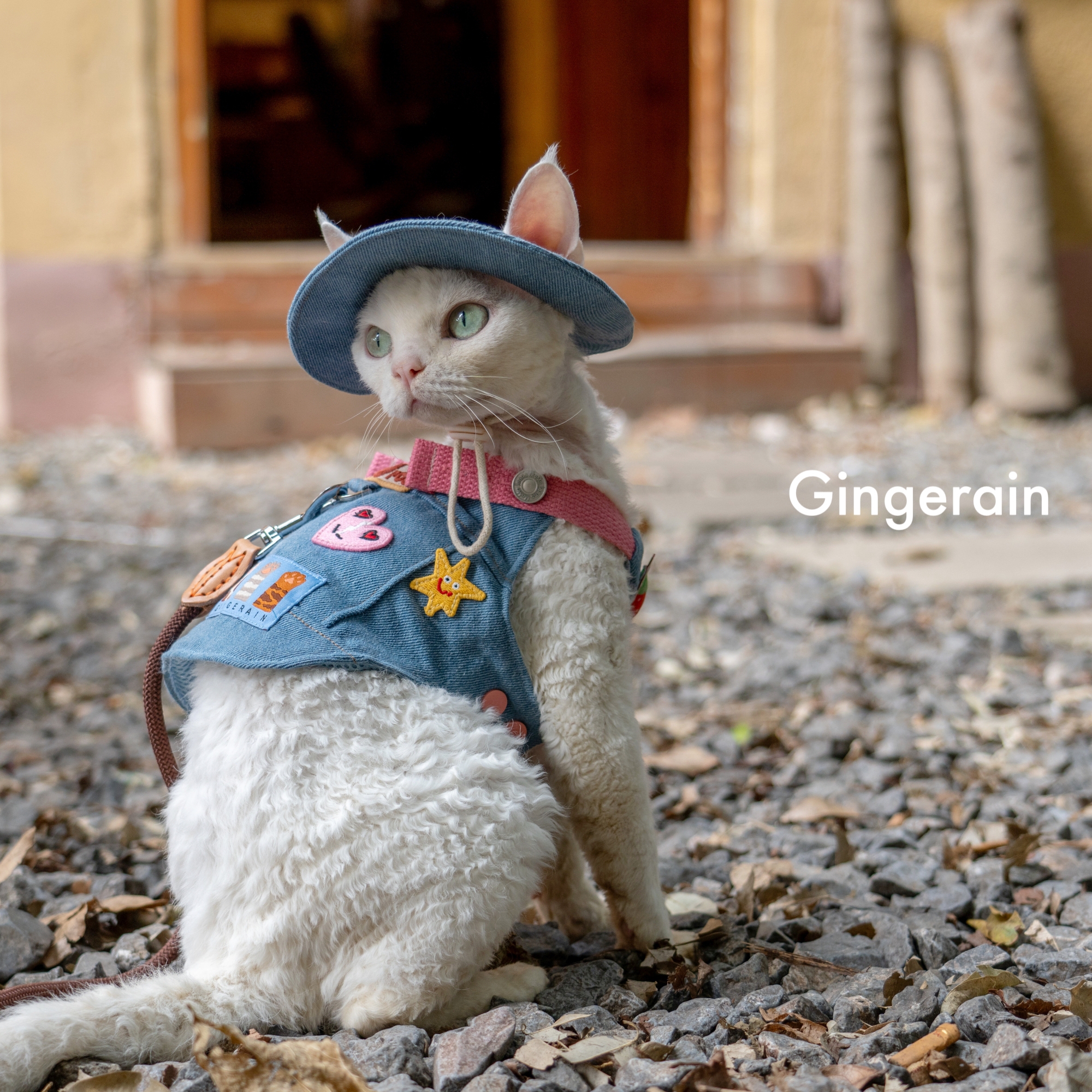 GINGERAIN 露营户外风牛仔遛猫胸背带牵引绳套装德文无毛猫背心