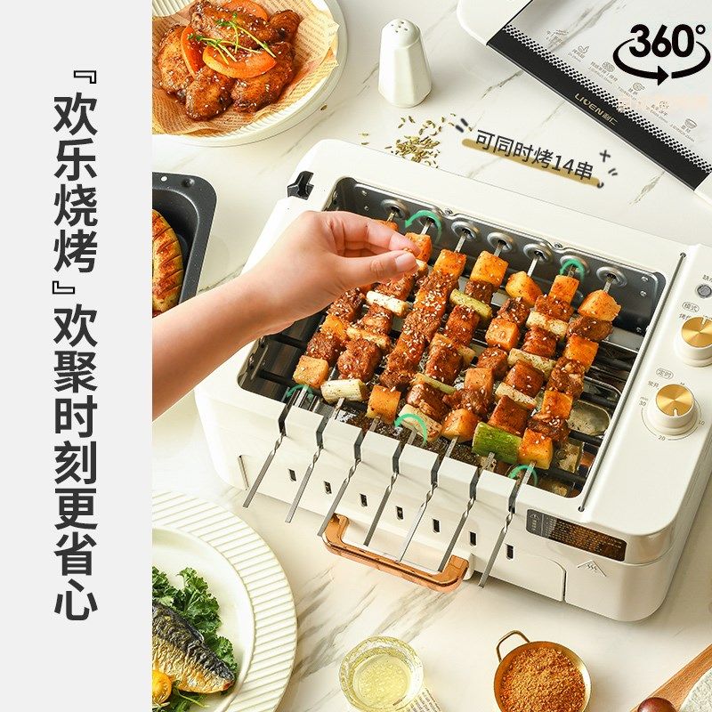 利仁烤串机烧烤机多功能电烧烤炉家用电烤串机全自动旋转室内无烟