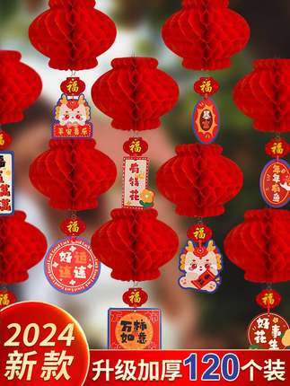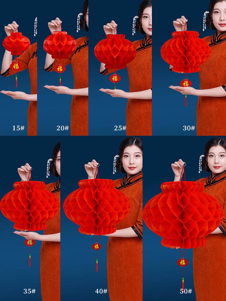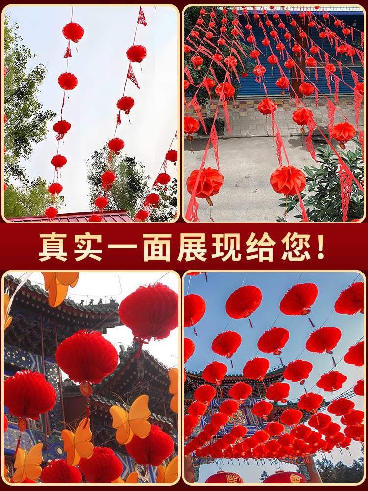 小灯笼结婚2024新款路边喜庆红纸蜂窝灯连串挂饰农村新年元旦装饰