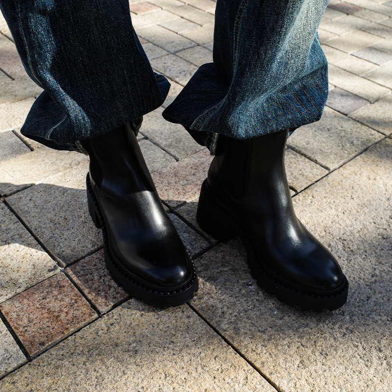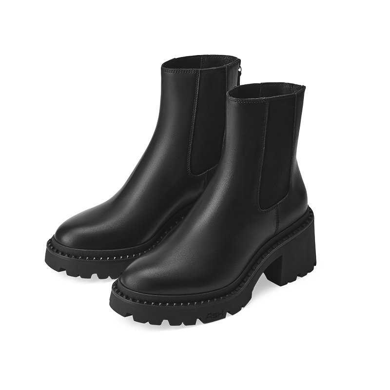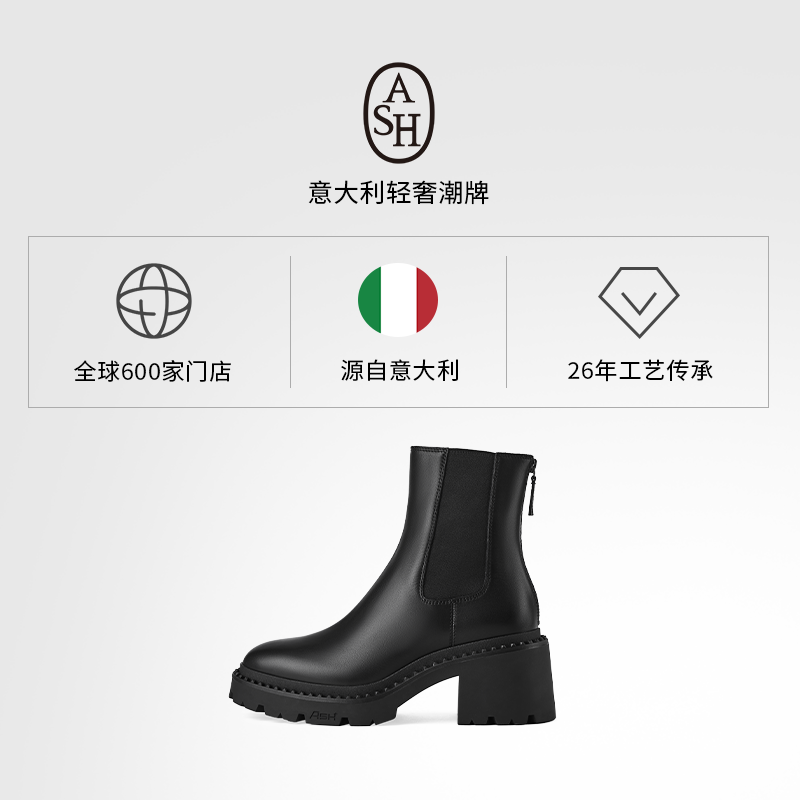 ASH女靴冬季新款NEWTON真皮高跟切尔西靴粗跟后拉链高跟短靴单靴