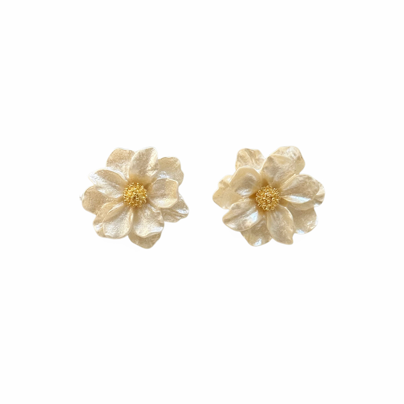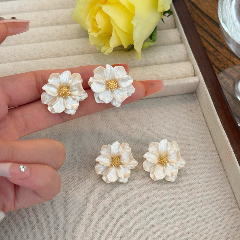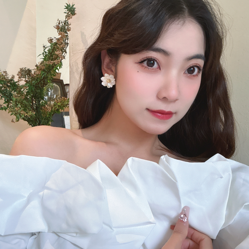 山茶花耳钉女轻奢高级感耳环2025新款适合夏天的无耳洞耳夹耳饰品