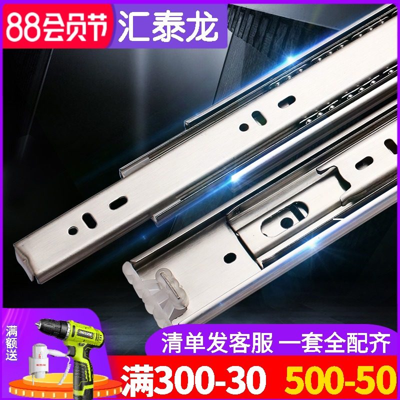 汇泰龙304不锈钢抽屉轨道静音导轨3三节轨滑道键盘托架衣橱柜滑