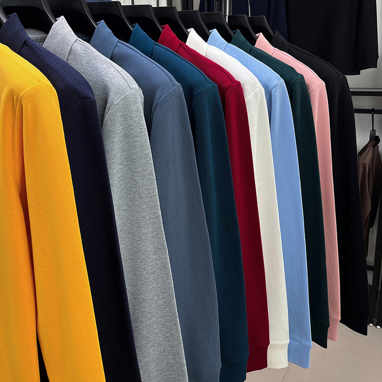 100%纯棉长袖t恤男人翻领秋衣上衣全棉商务休闲polo衫