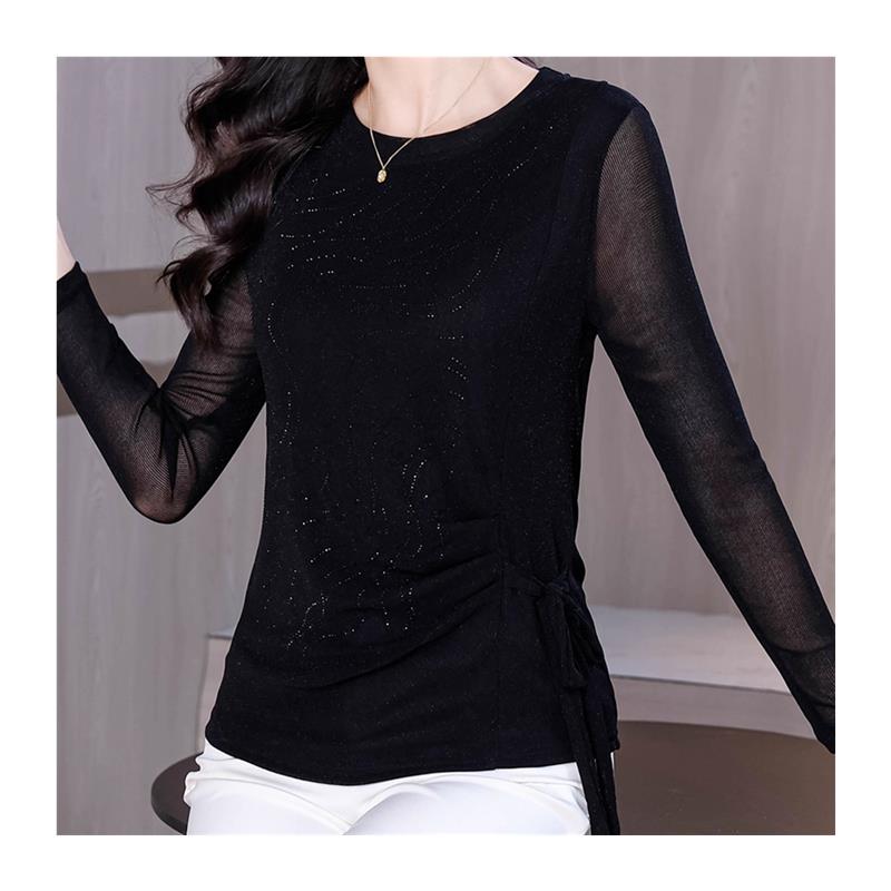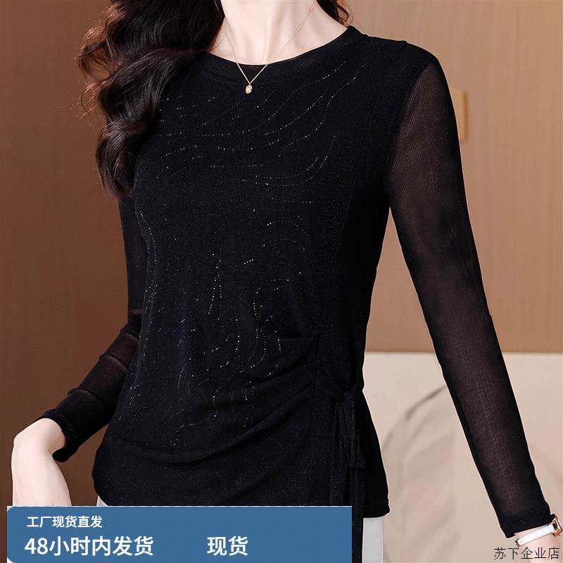 黑色网纱长袖内搭打底衫女春秋2025新款秋季女士T恤衫早秋装上衣