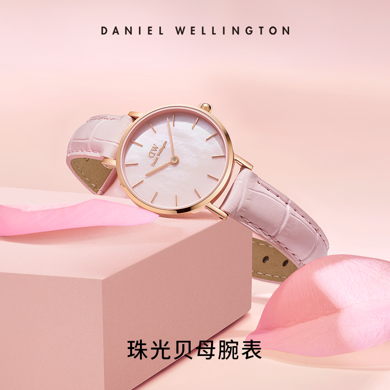 粉色珠光32mm贝母表盘皮带轻奢DW