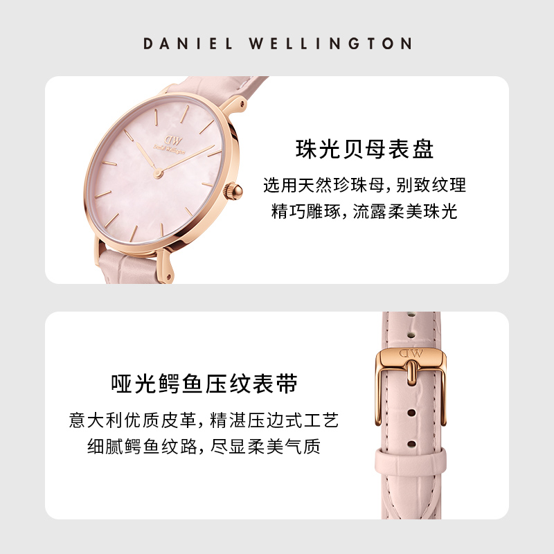 DW手表 PETITE系列珠光贝母盘皮质女表32MM 丹尼尔惠灵顿