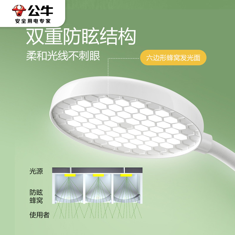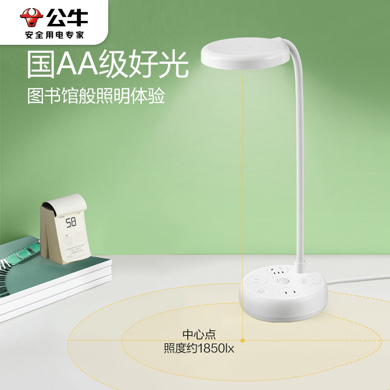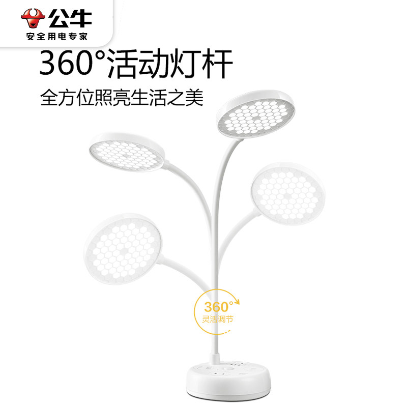 公牛多功能插座式LED国AA级护眼台灯卧室书桌usb充电排插线板带线