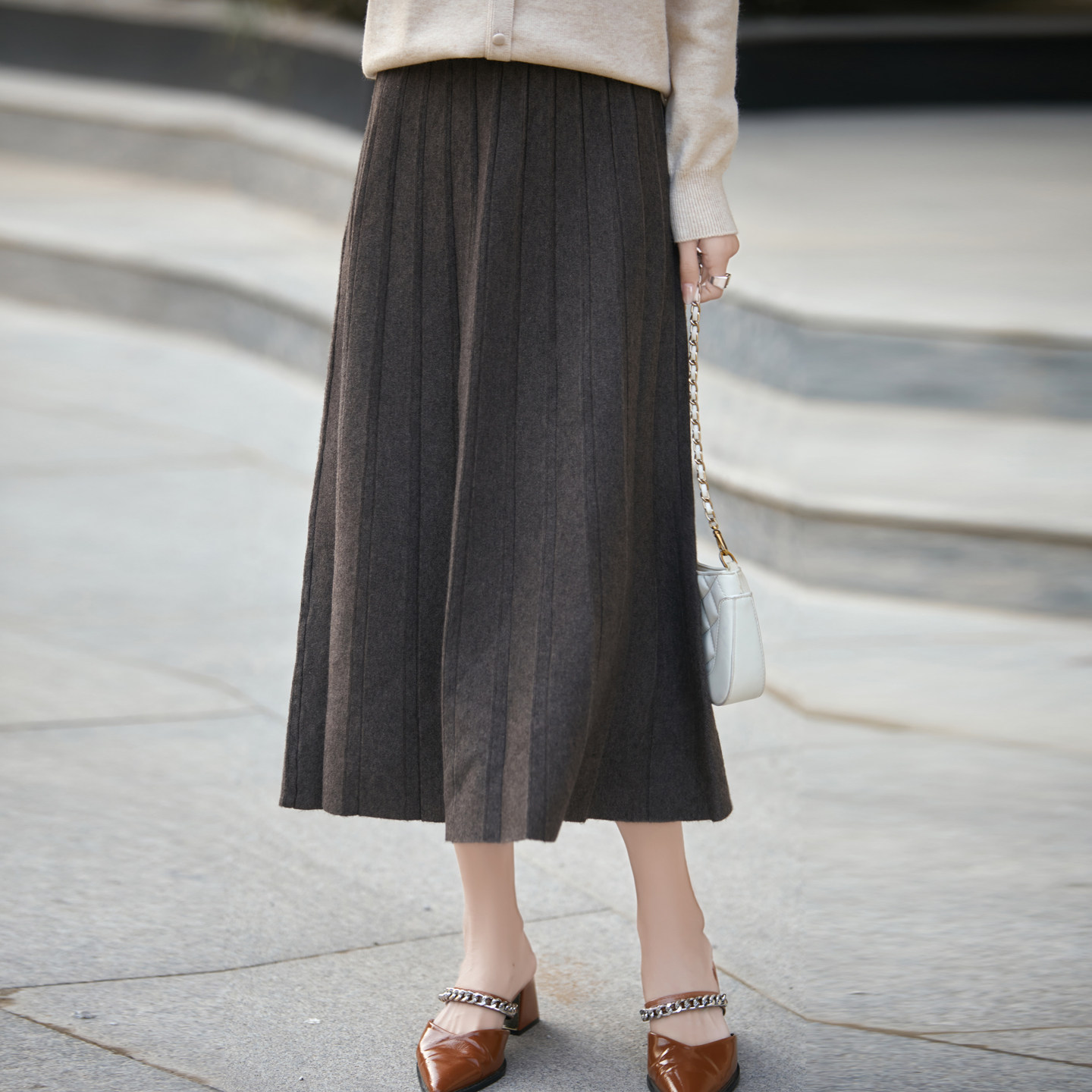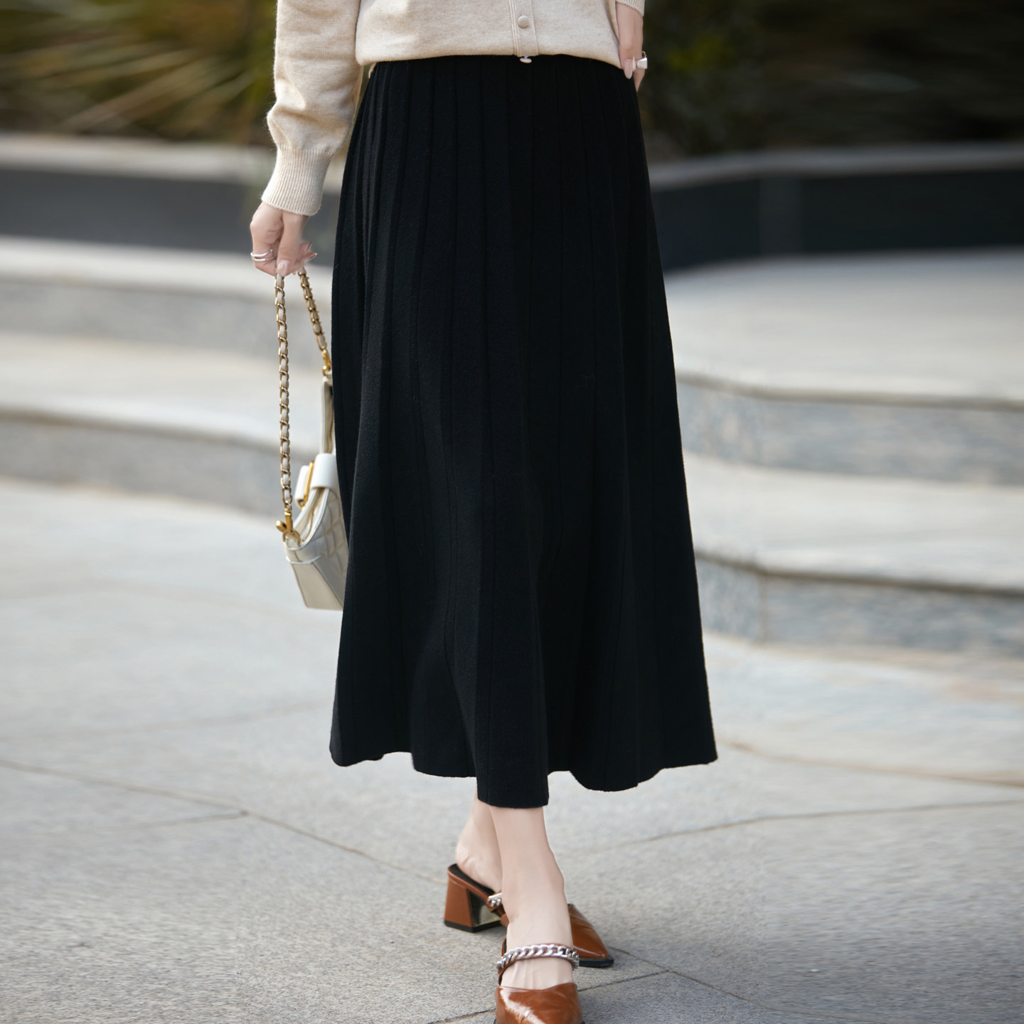 可机洗秋冬中长款羊毛半身百褶裙
