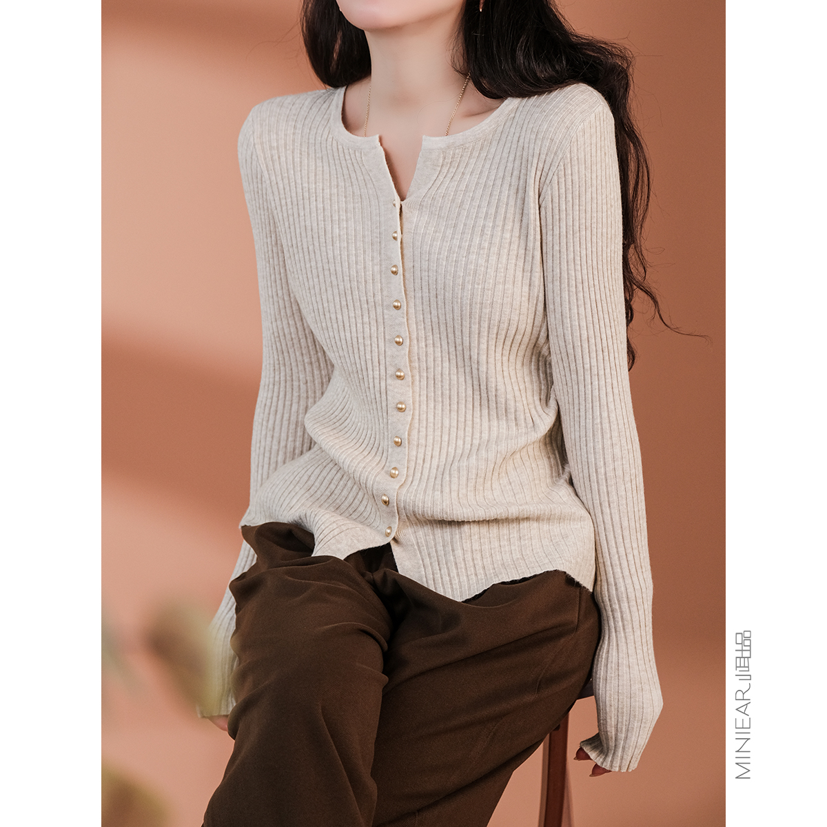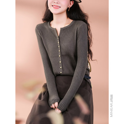 小耳出品【似水流年】仿牛绒复古文艺坑条单排扣气质小开衫女