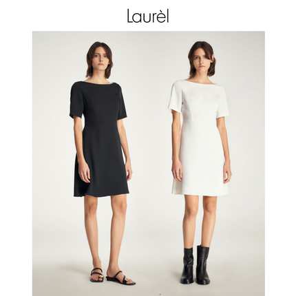Laurel劳芮春夏时尚淡人修身三醋酯小黑裙连衣裙伞裙LWD342Y13400
