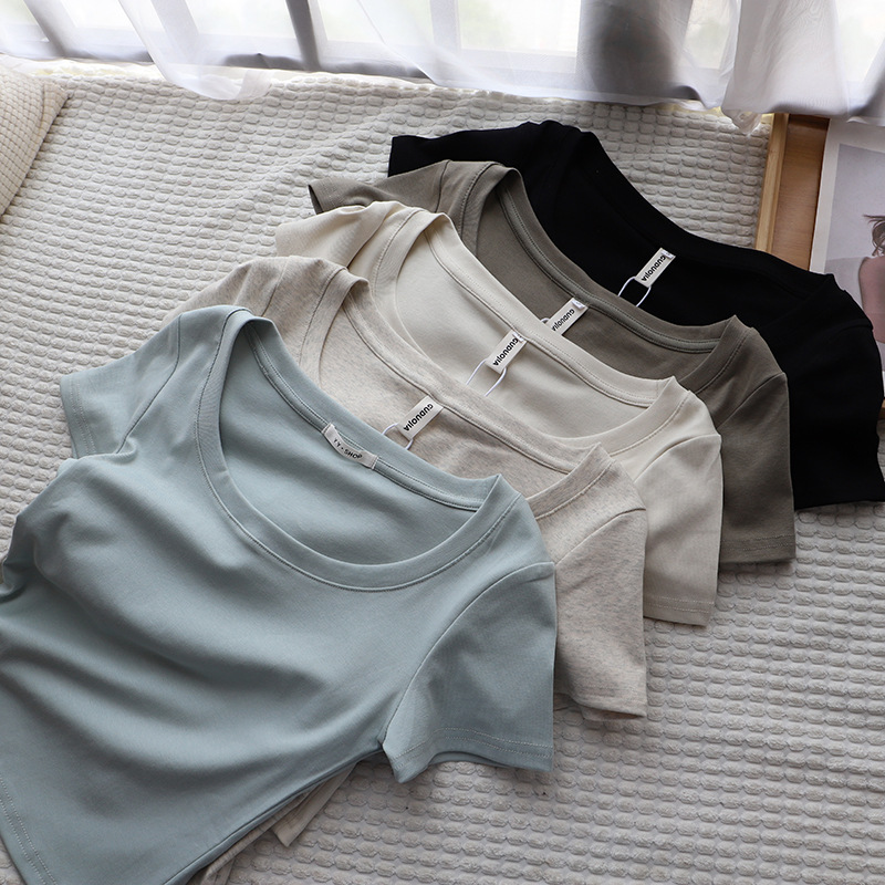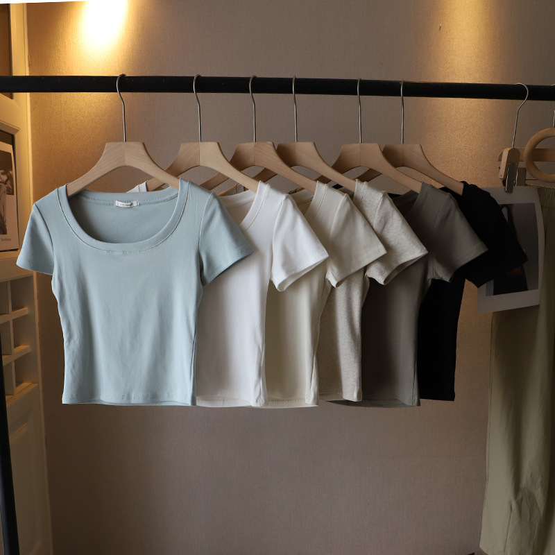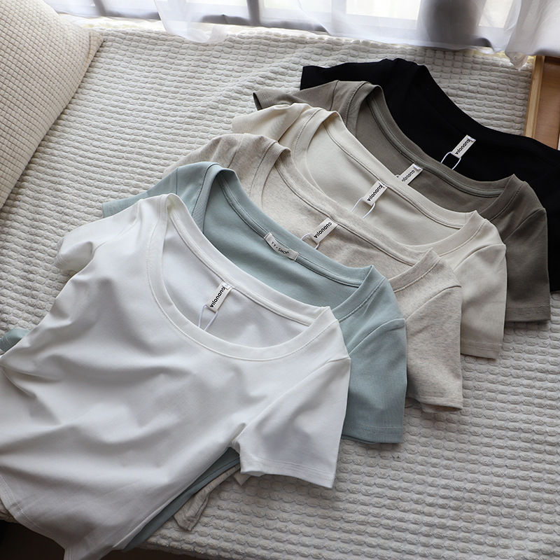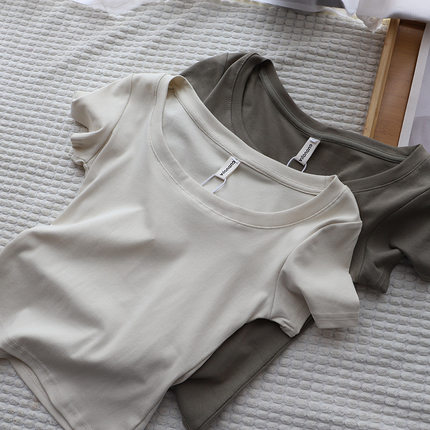 超值锁骨T2025夏季新品韩版女装圆领修身T恤短袖上衣8465强明女装