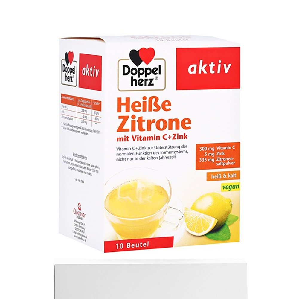 欧洲直邮德国双心Doppelherz补充vc+锌热饮柠檬味 维生素C+锌10包