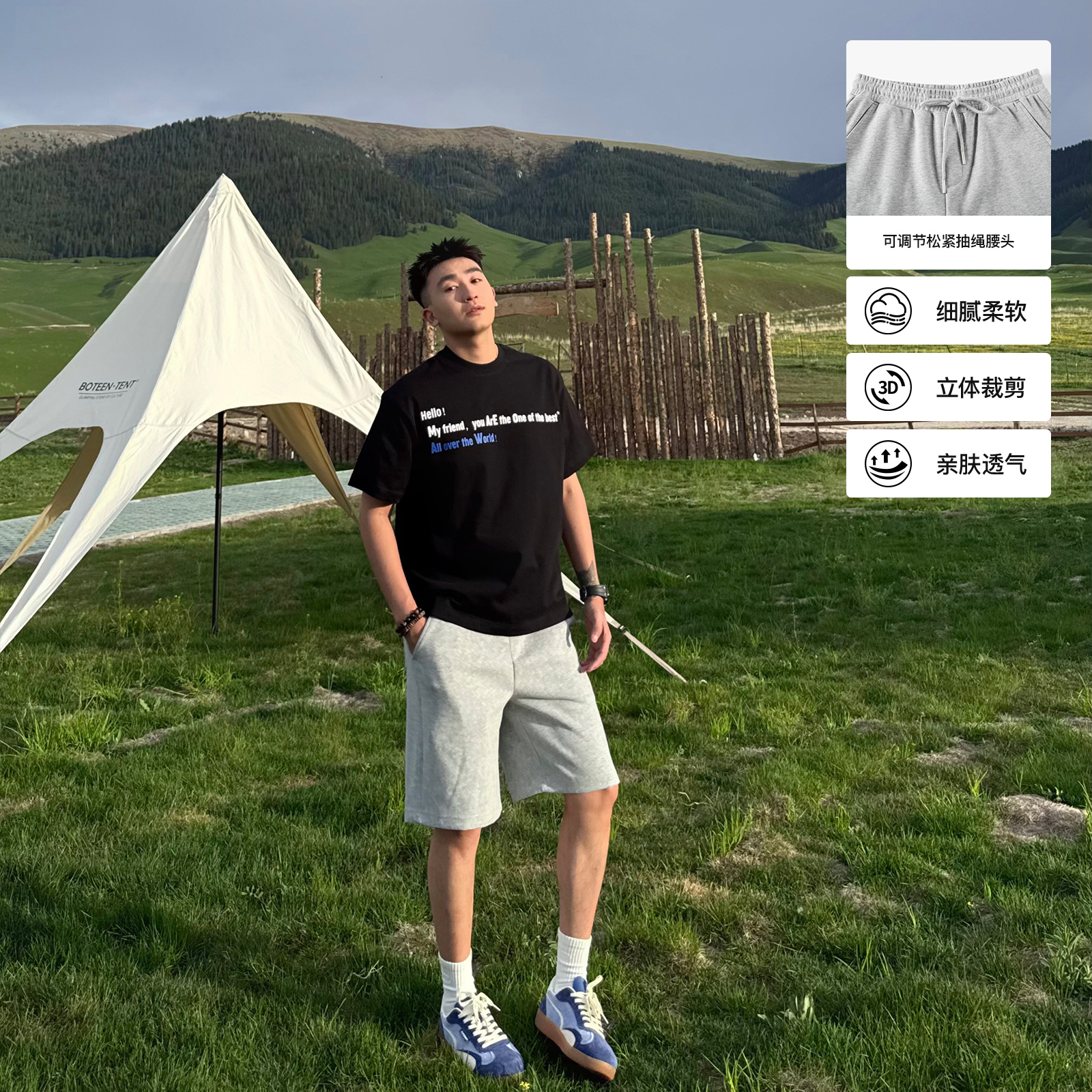 SANBAI 叁佰【懒人神裤】针织抽绳短裤男休闲宽松运动美式五分裤