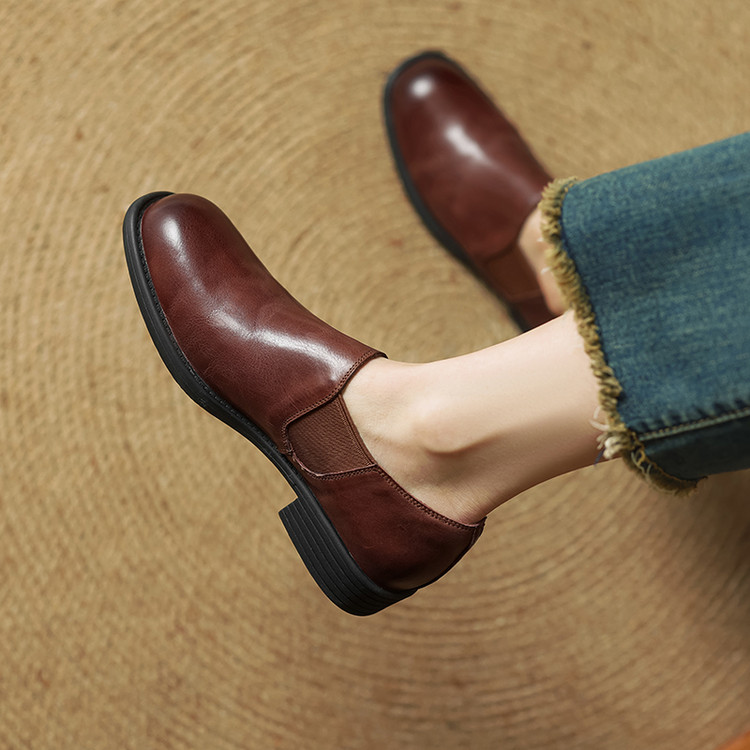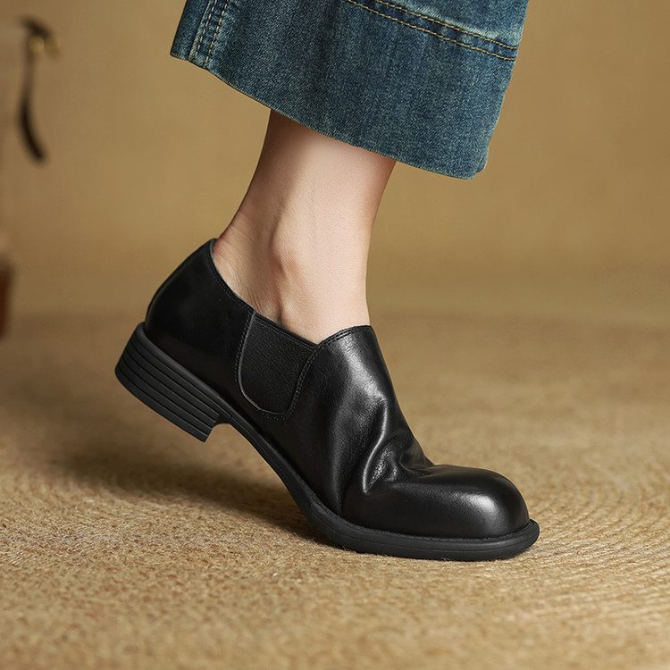 粗跟橡胶胶粘工艺头层猪皮单鞋深口单鞋
