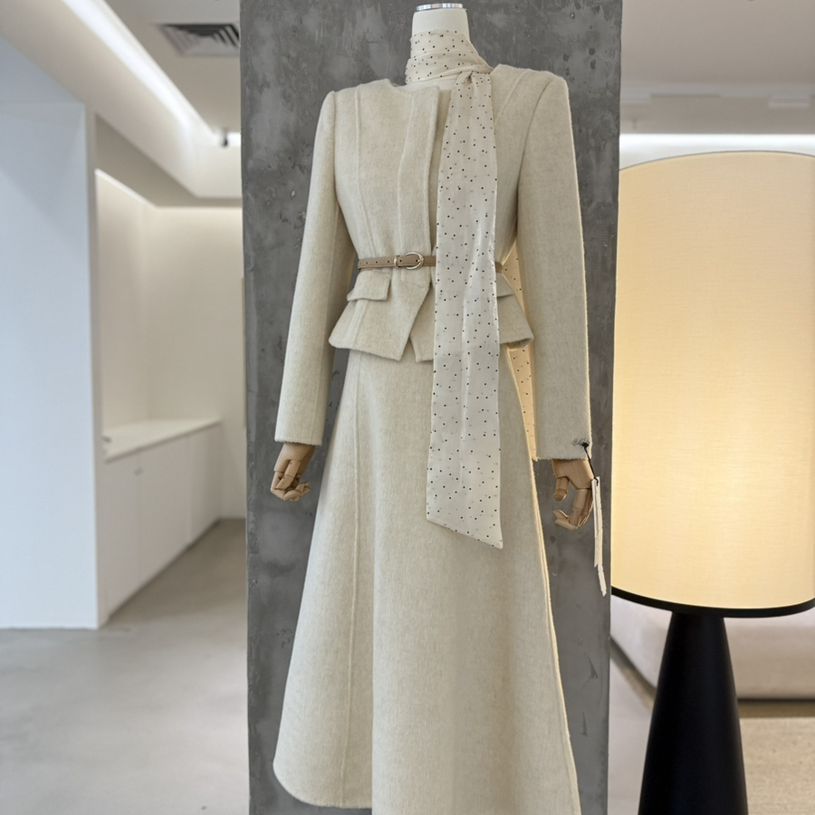 童心家质款外套+半身裙套装配腰带含100羊毛无领标CF23