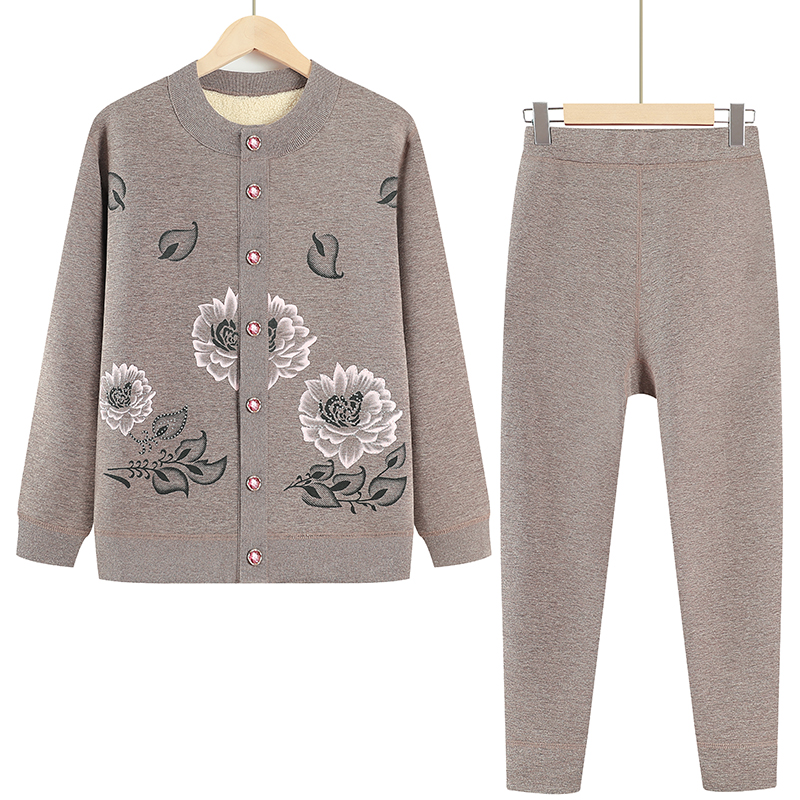 中老年人秋冬装女妈妈保暖内衣套装加绒加厚太太衣服奶奶装两件套