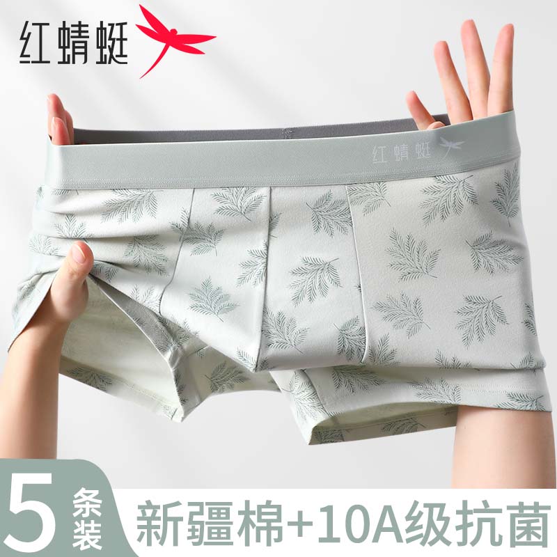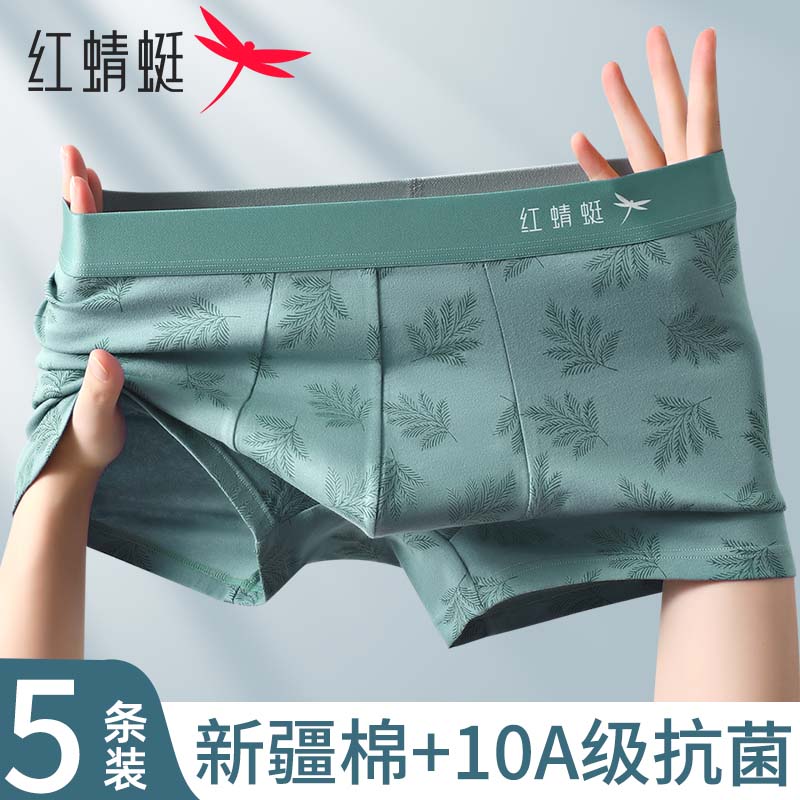 红蜻蜓a类棉四角男士内裤男纯棉10A抗菌男款大码中腰运动平角短裤